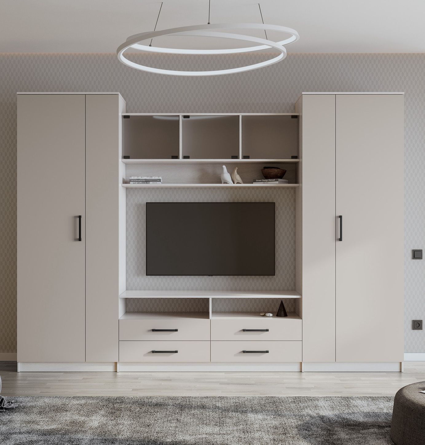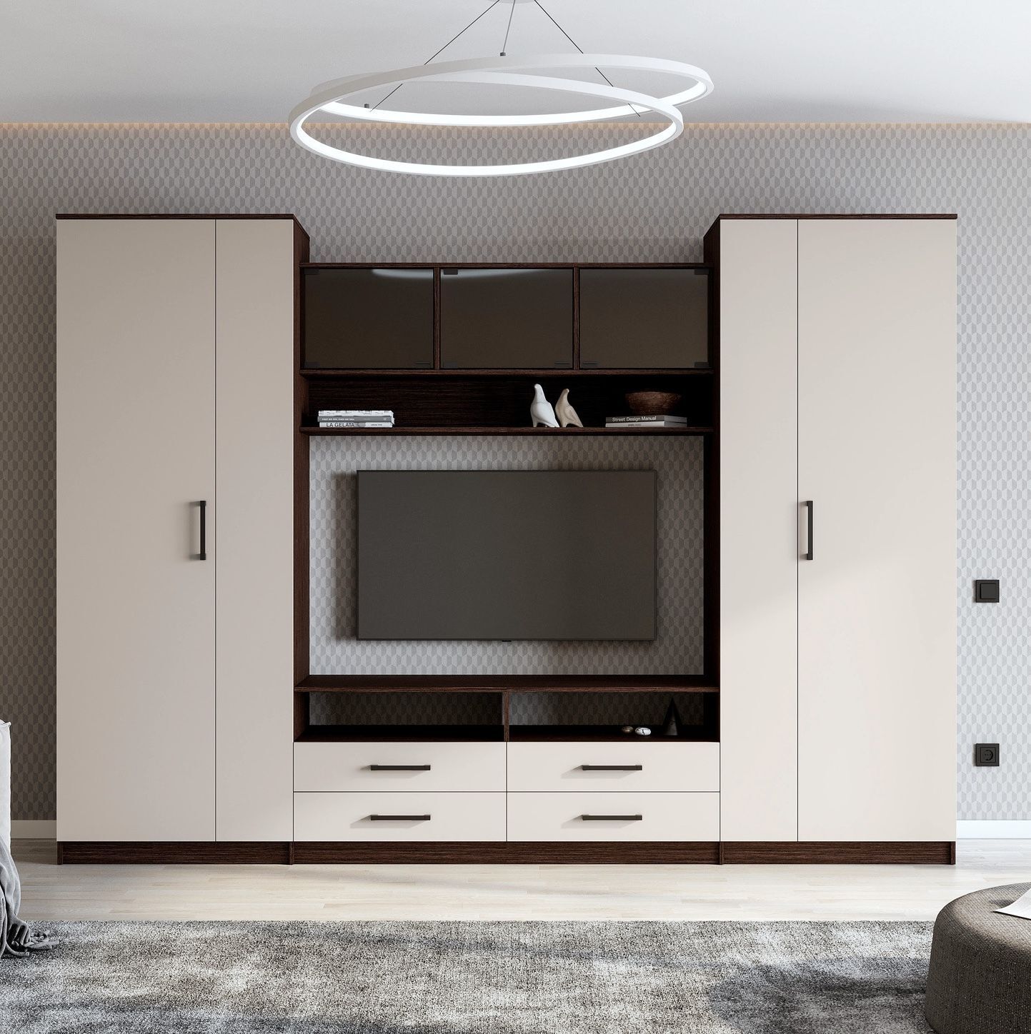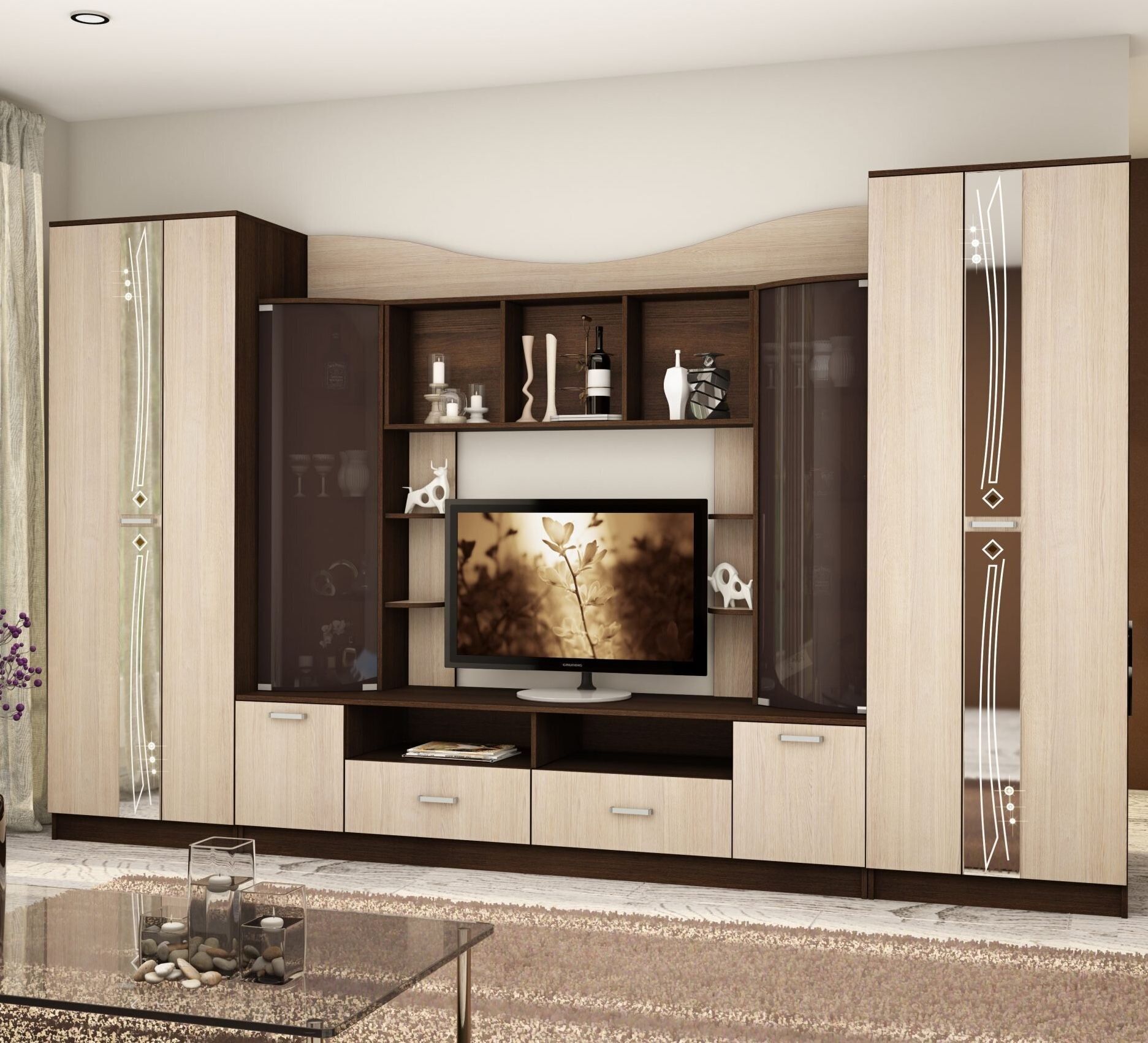Стенка выполнена в стиле минимализма, что делает ее универсальной для любого интерьера. Она может стать отличным дополнением к вашему дому или офису и поможет создать уникальную атмосферу.