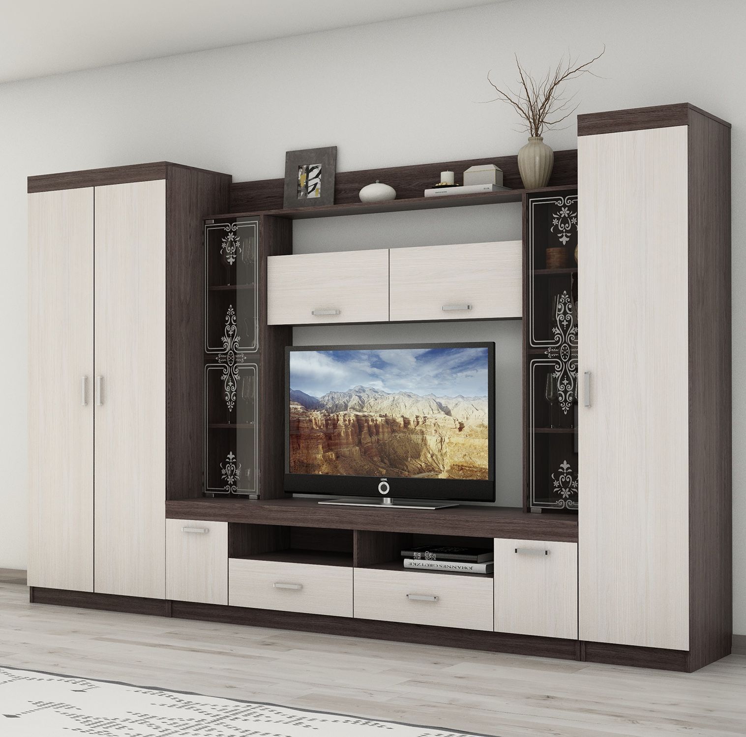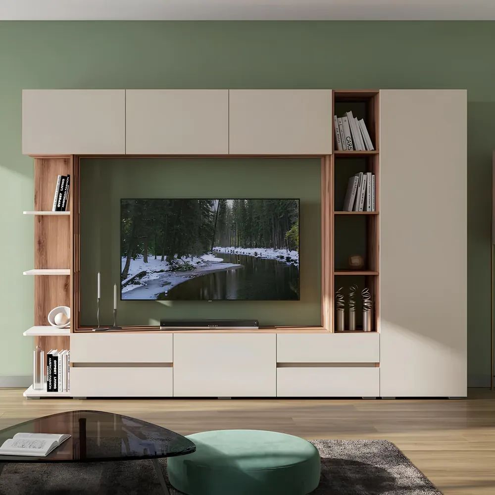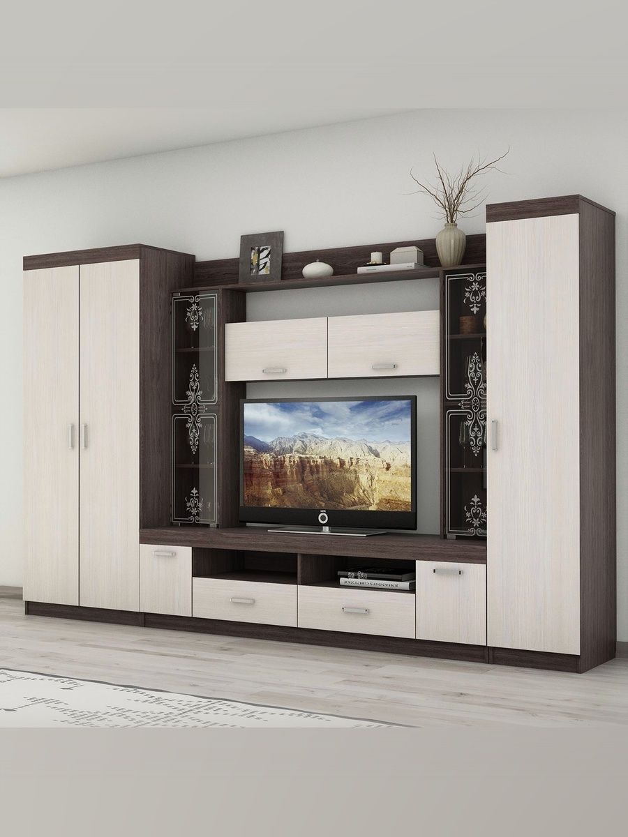 Особое внимание стоит обратить на то, что эта стенка имеет максимальную ширину экрана телевизора 144 см и максимальную высоту 87 см, что позволит вам наслаждаться просмотром фильмов и сериалов без каких-либо ограничений.