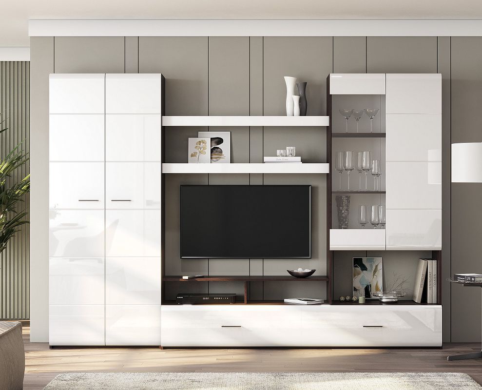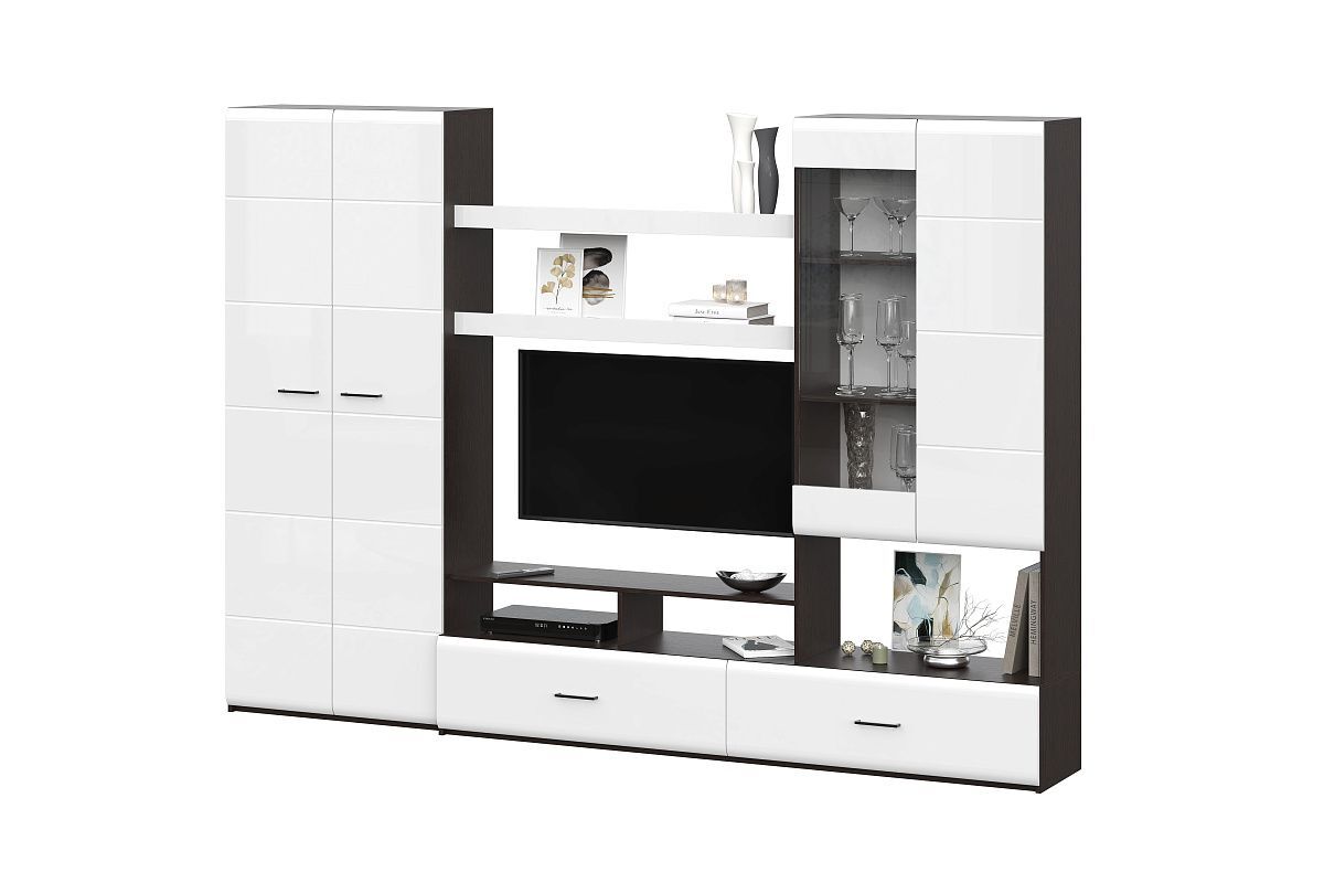 Гостиная МГ7 венге/белый глянец - это идеальный выбор для тех, кто хочет создать стильную и функциональную обстановку в своем доме или на даче. Эта стенка отлично подходит для любого помещения, будь то гостиная, детская комната, кабинет, кухня-столовая или спальня.