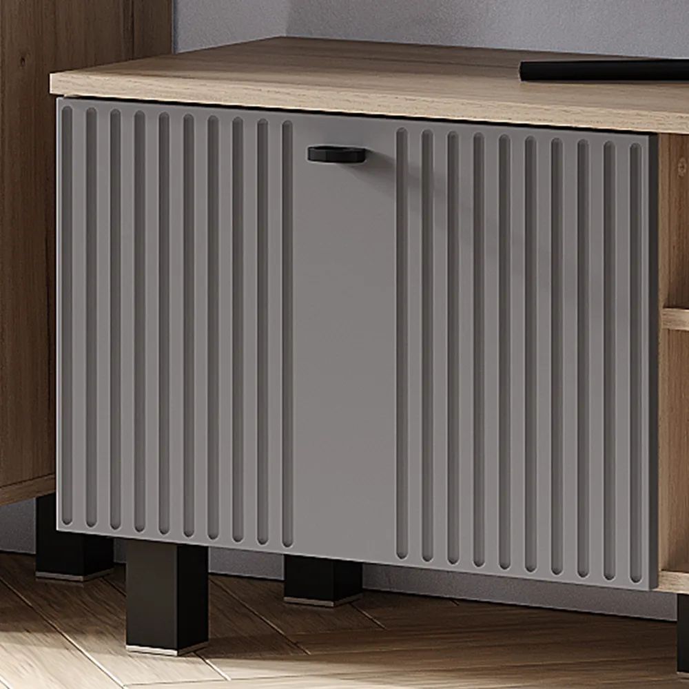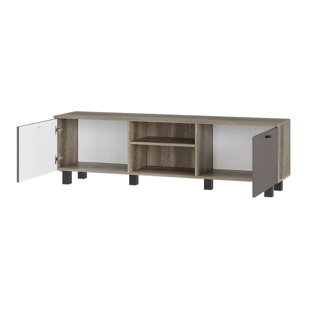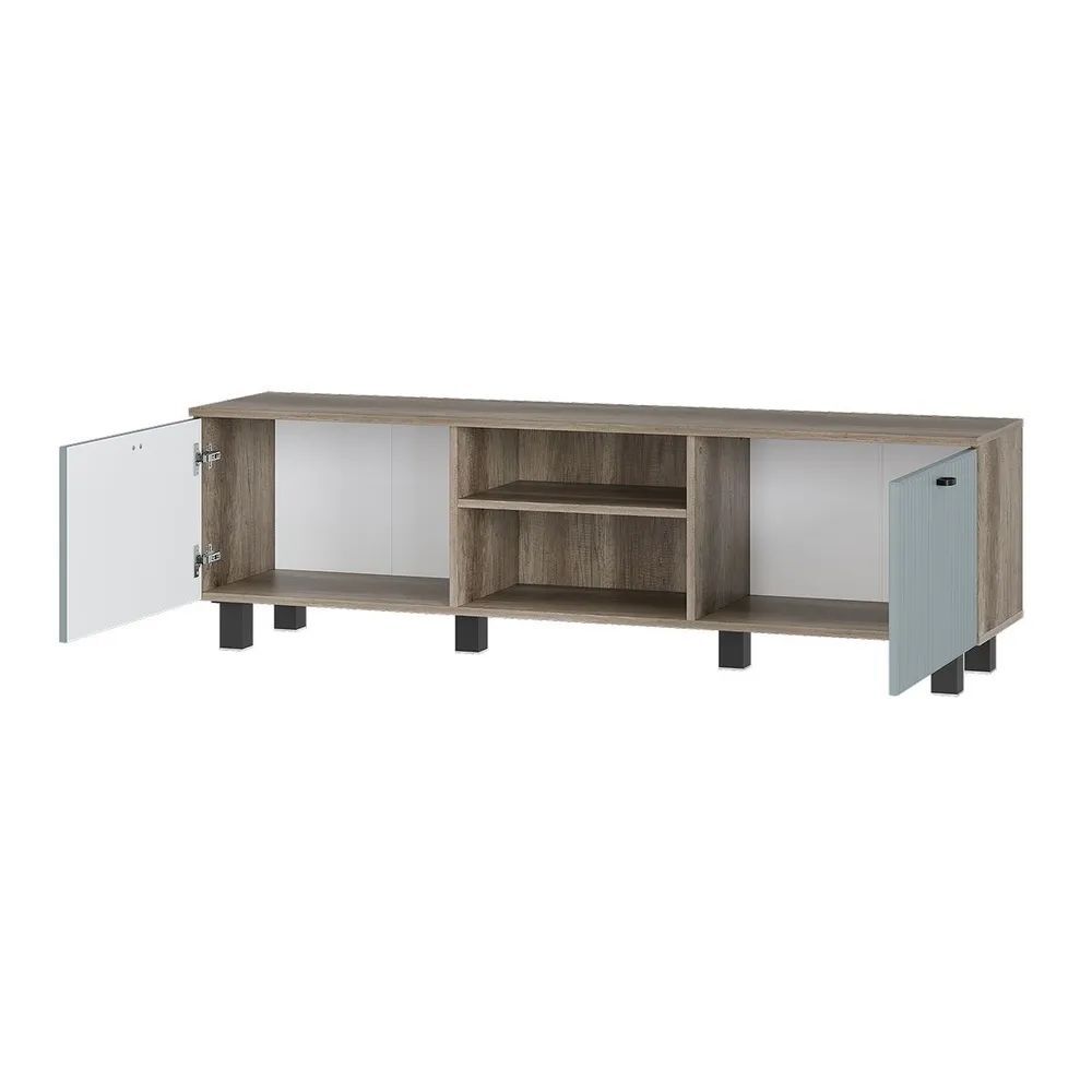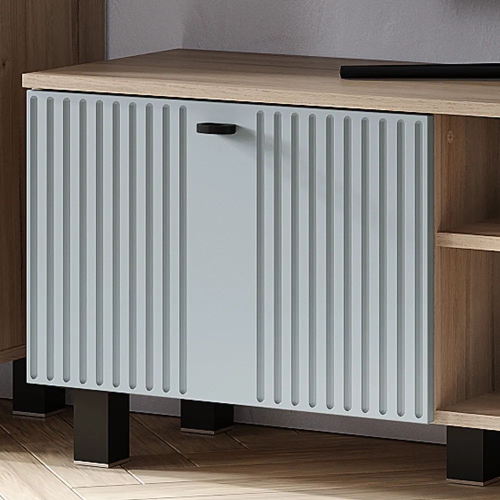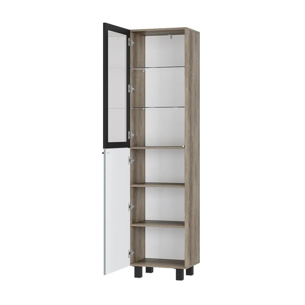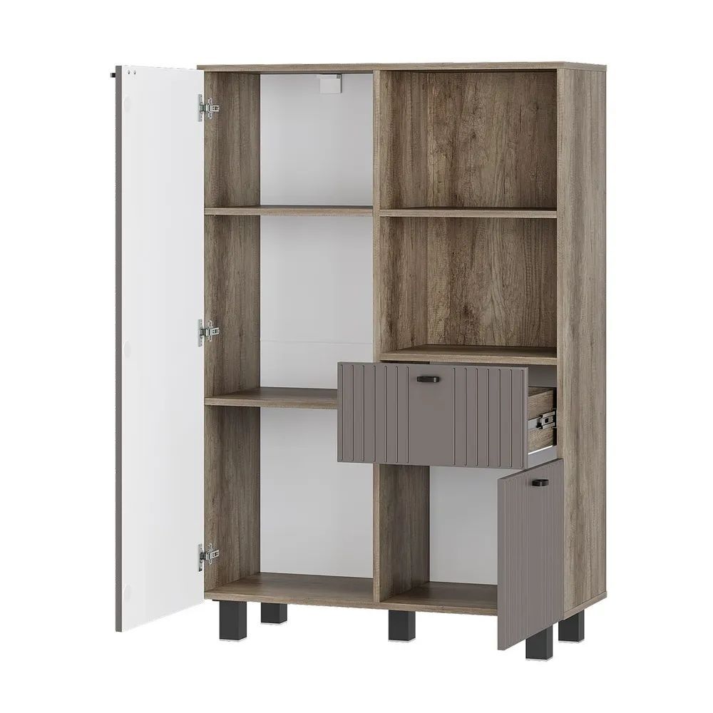 Гостиная "Олива" состоит из шкафа-витрины, комода, тумбы под ТВ и настенной полки. Это позволяет вам хранить все необходимое в одном месте и легко получить доступ к нему.