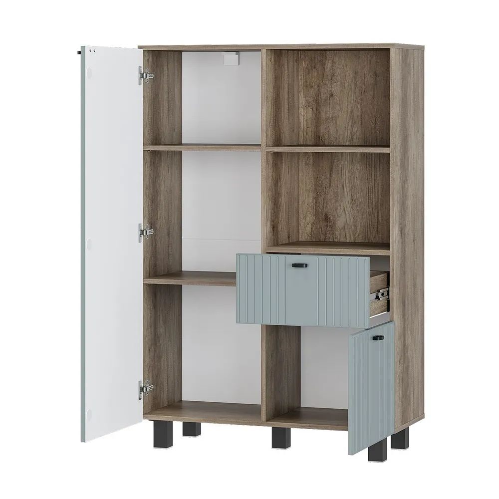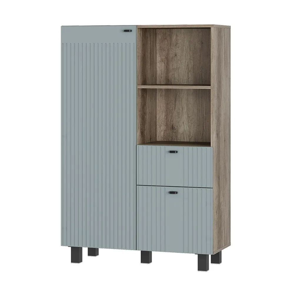 Основной материал корпуса - ЛДСП, который обеспечивает долгую службу и защиту от повреждений. Фасад выполнен из МДФ, что придает ему матовый вид и уникальные цветовые решения.