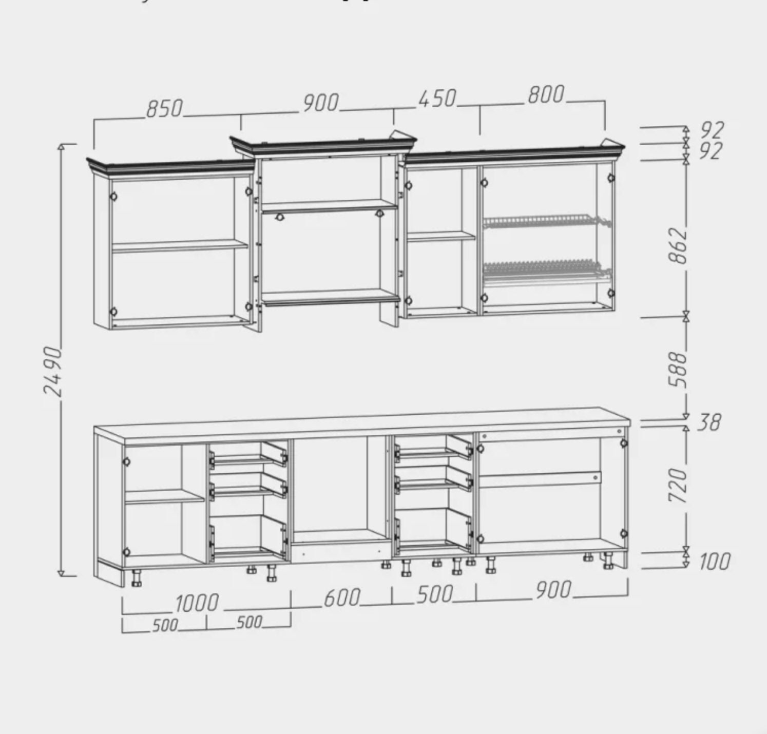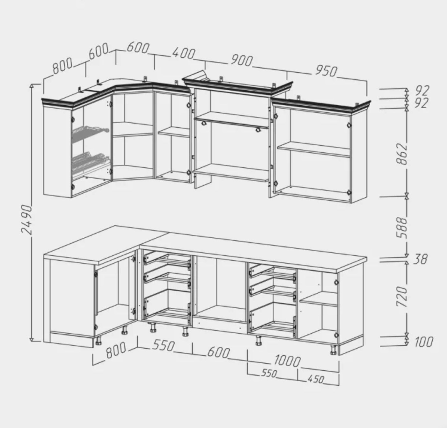 Все размеры указаны по габаритам корпуса без учёта вылета карнизов.