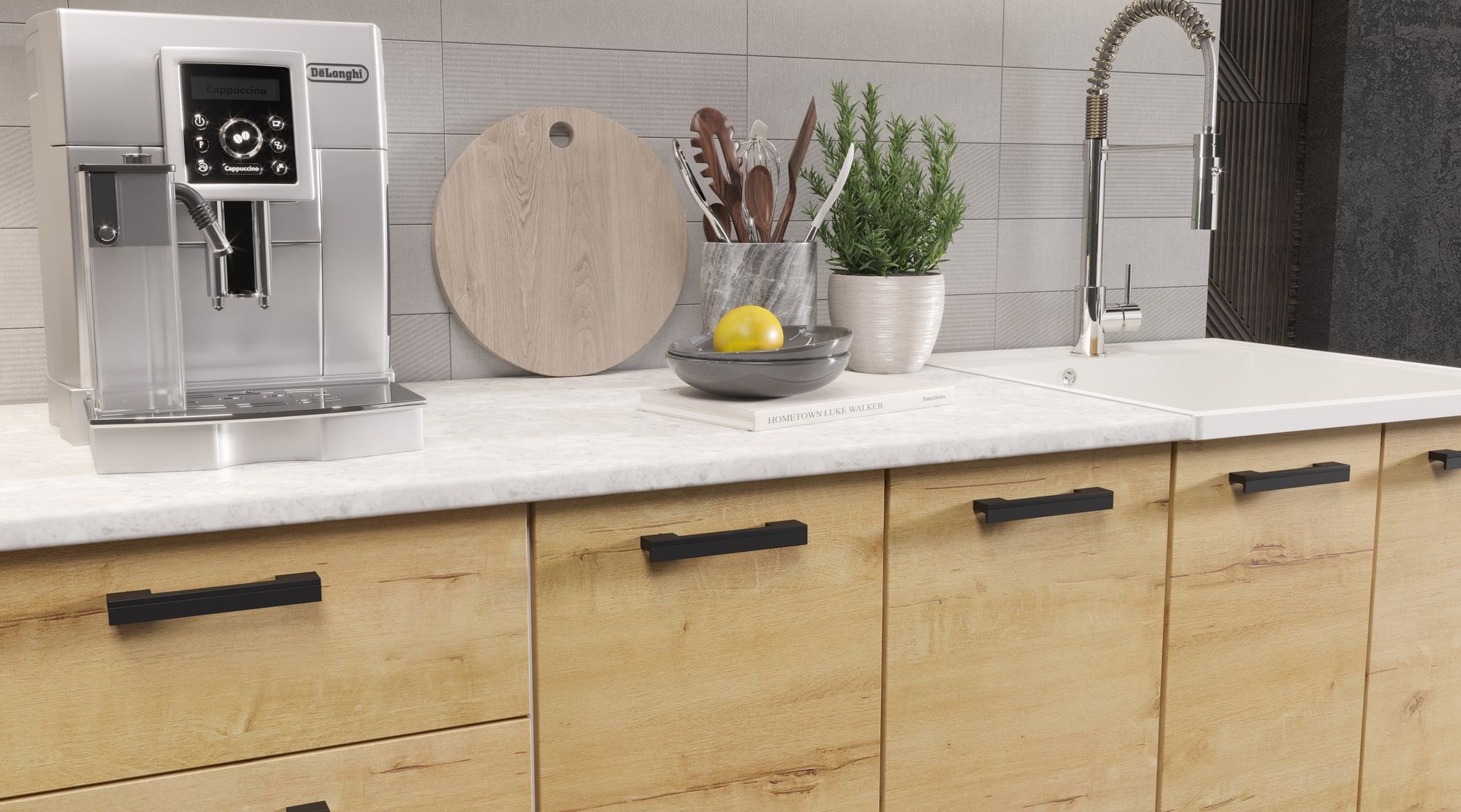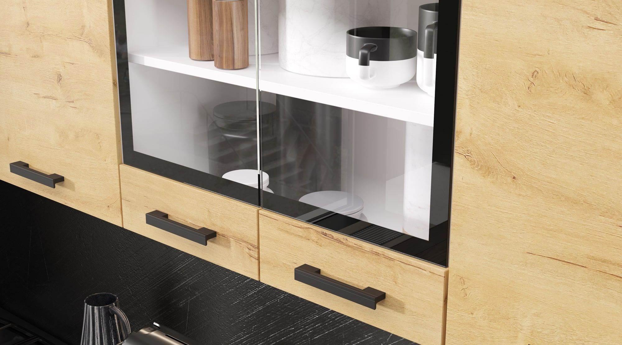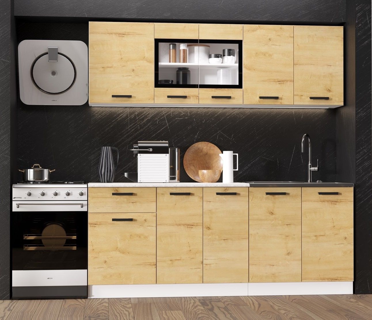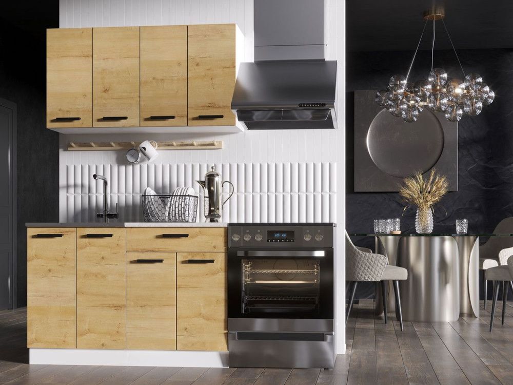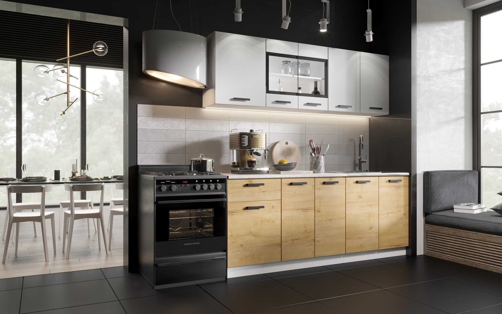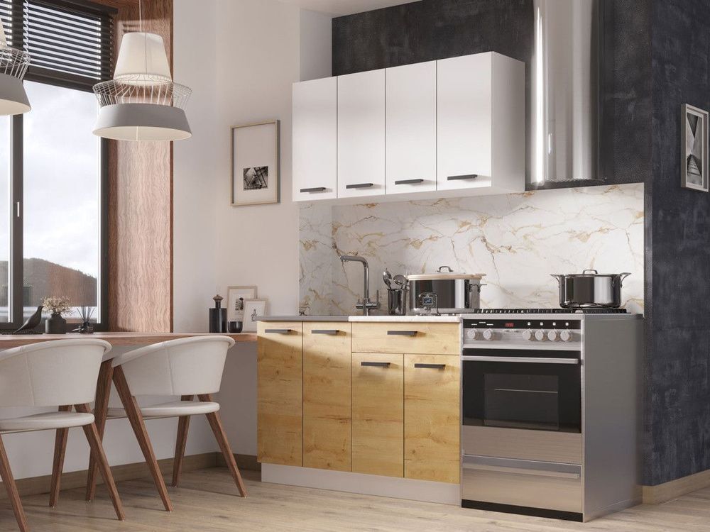 Стильный и практичный кухонный гарнитур Хозяюшка 150 см идеально подходит для небольших помещений. Шкафы и столы оснащены необходимым количеством отделений и полок, где вы сможете разместить бытовые и столовые принадлежности.