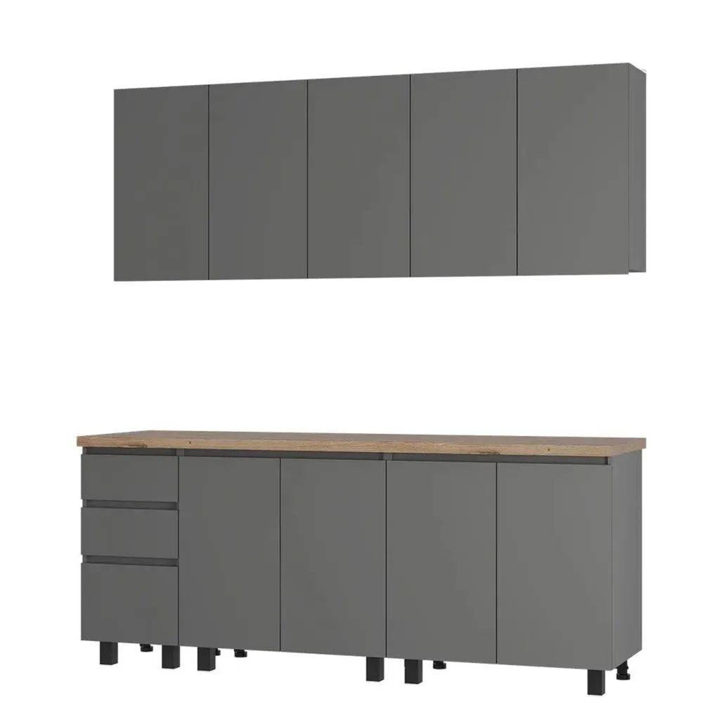 Кухня 2 метра выполнена без фурнитурных элементов на фасадах. Открывание дверей и ящиков производится за счет пространства между планками и фасадами. Фасады являются универсальными и имеют возможность установки, как на верхние, так и на нижние модули.