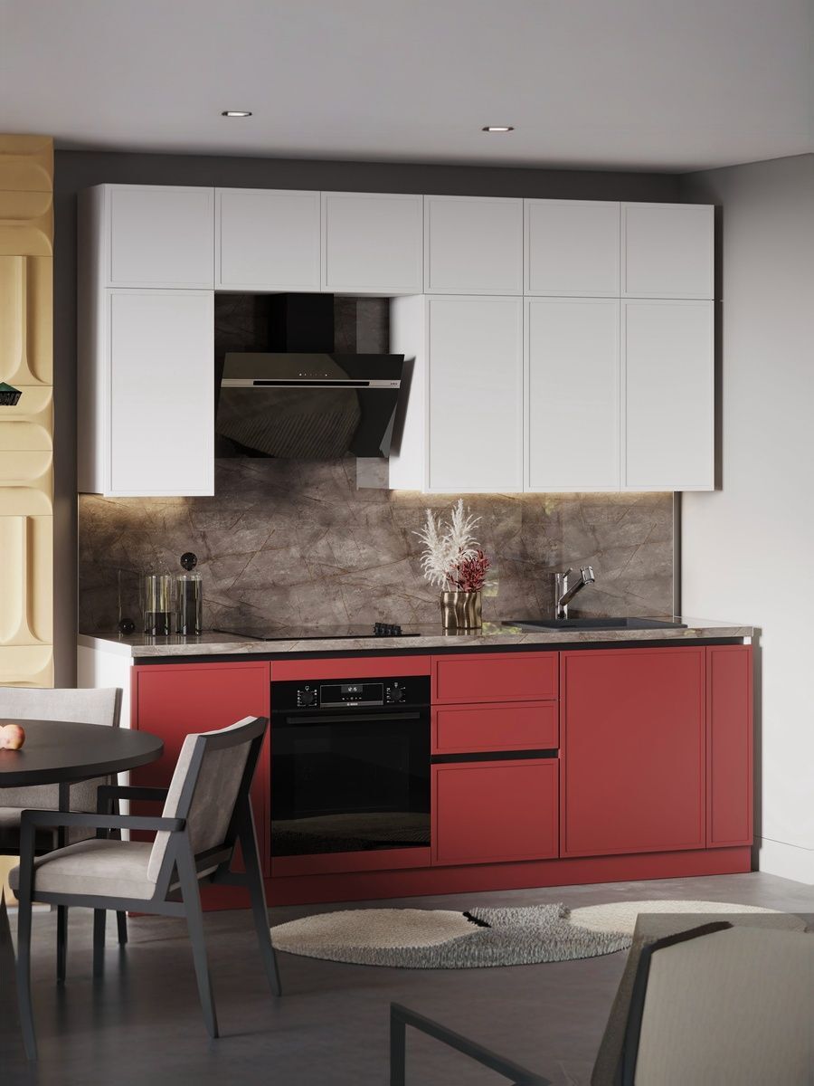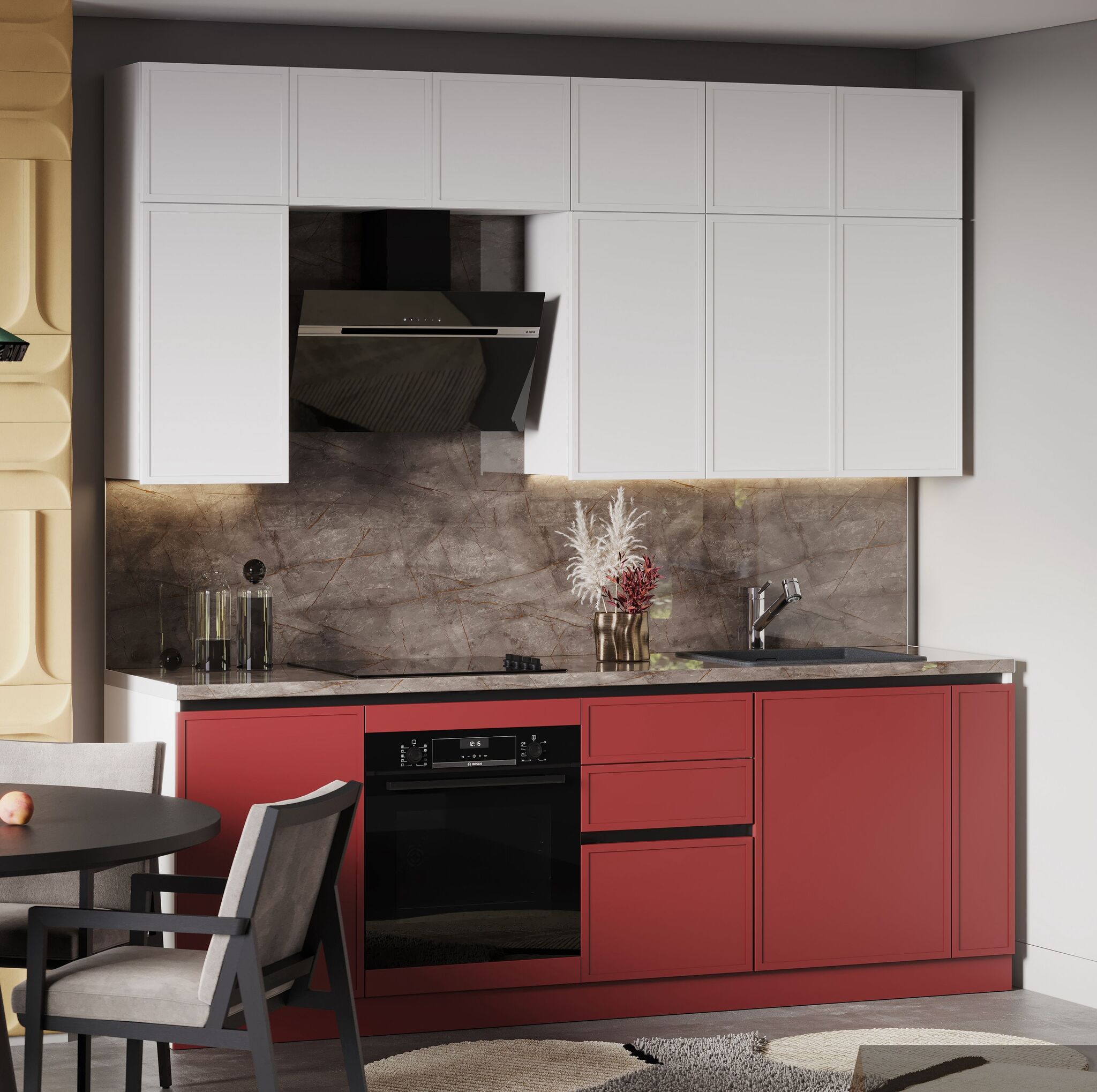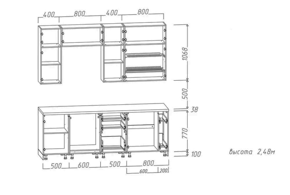 Стеновая панель (фартук) в цвет столешницы с соединительными планками и плинтусом Посудосушитель с поддоном