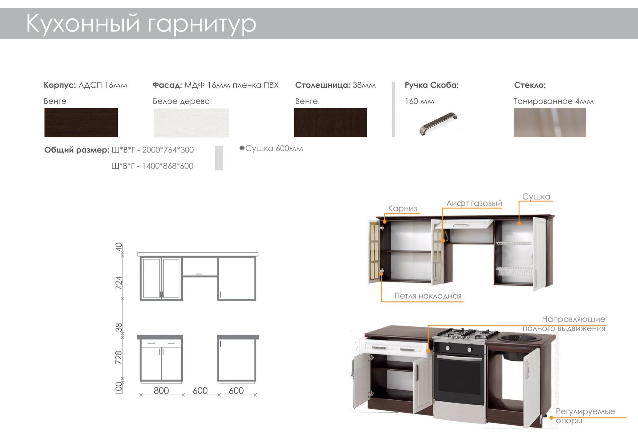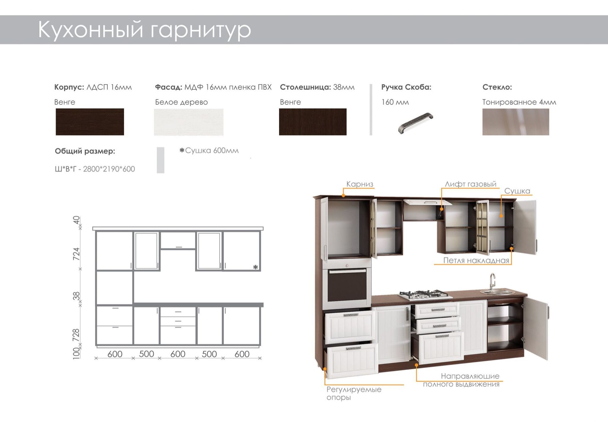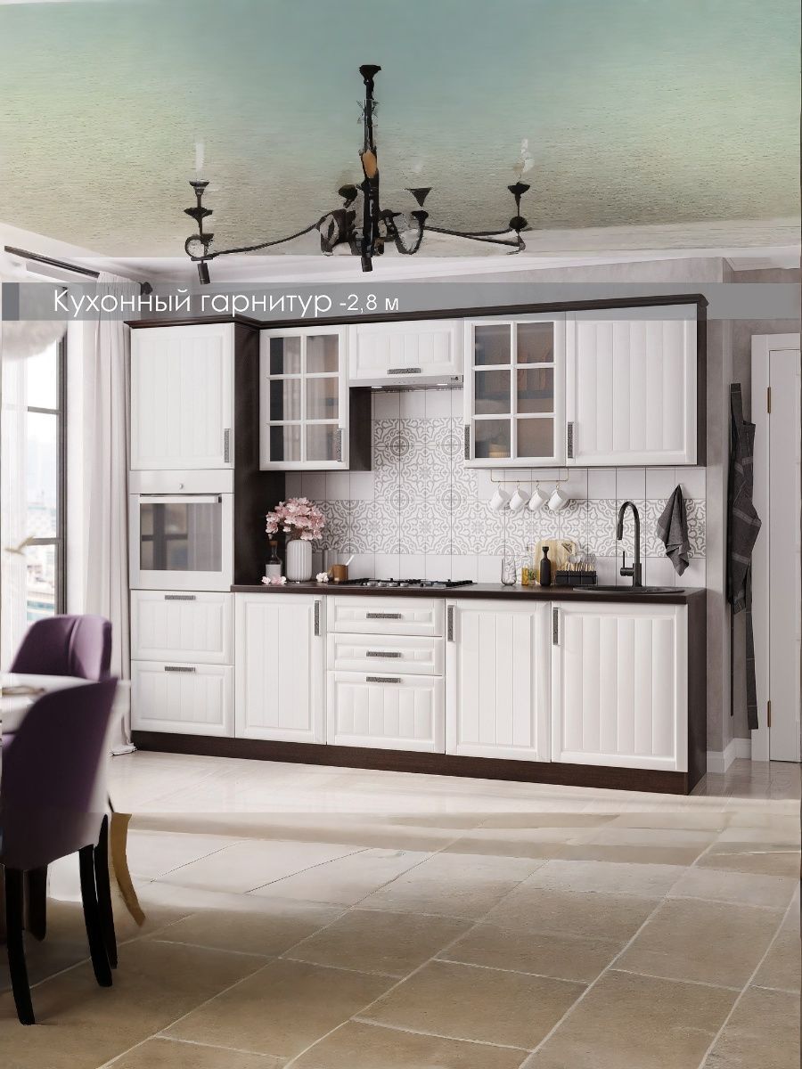 Стильный Кухонный гарнитур. Корпус венге. Фасад МДФ белый. Мойка и техника не входит в комплект.