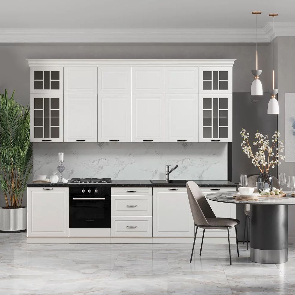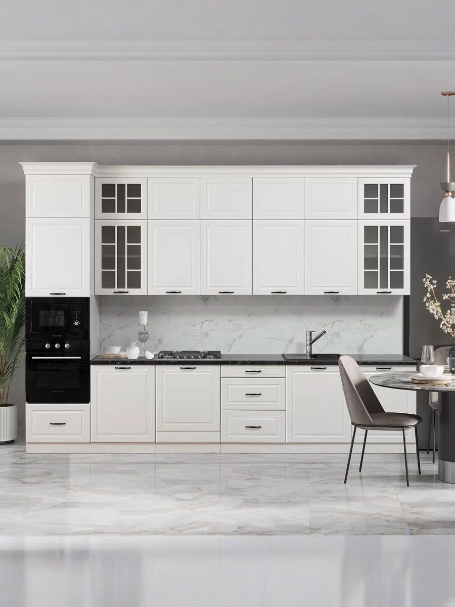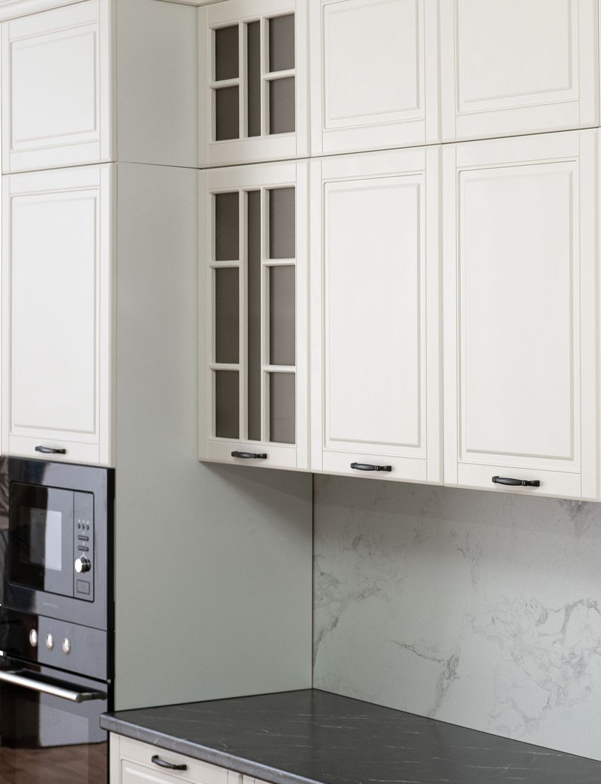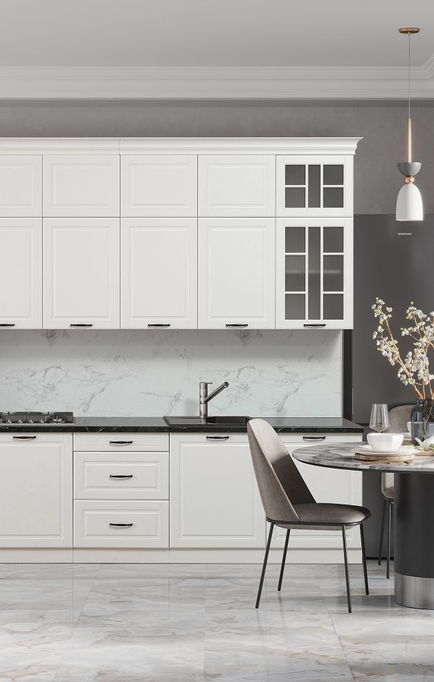 Столешница и стеновая панель: Морион/Мрамор Бернини