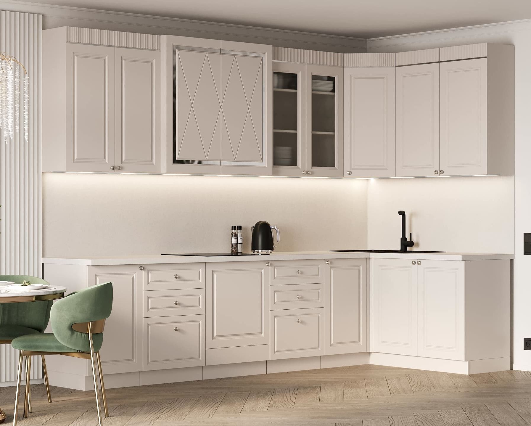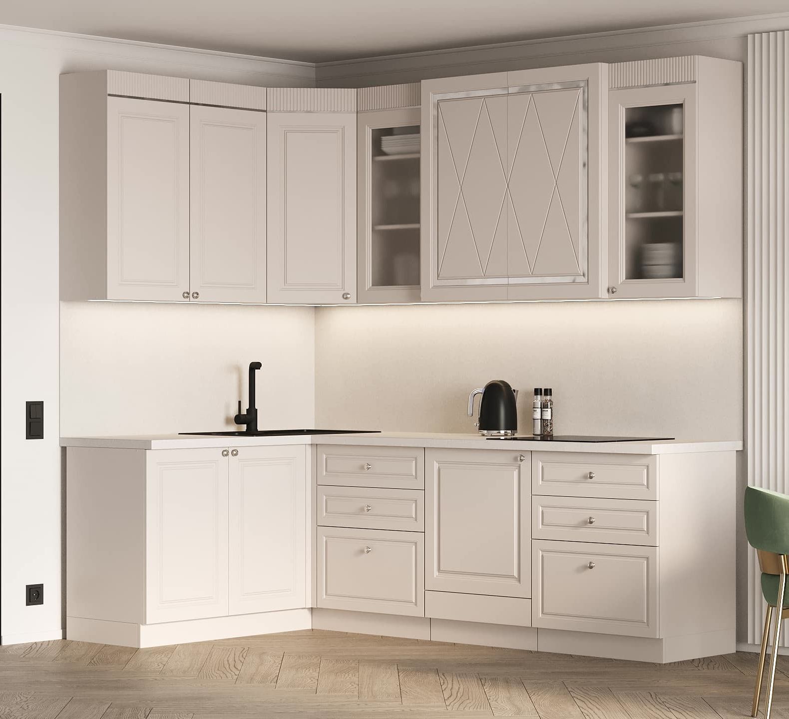 Фасады ЛМДФ 16 мм, класс безопасности Е1 (полностью безопасно и соответствует ГОСТу). Лакокрасочные материалы производства Италии и Турции.
