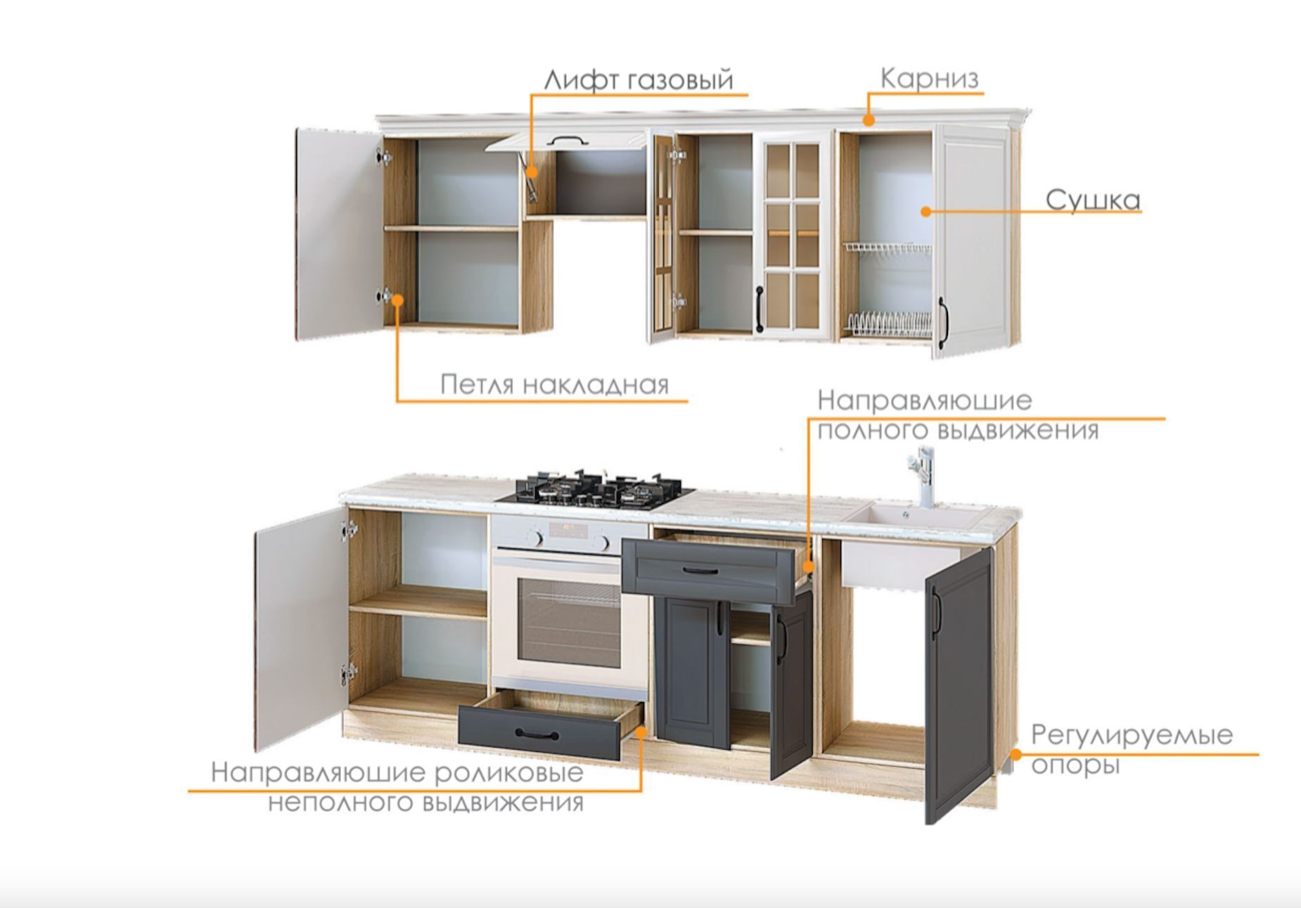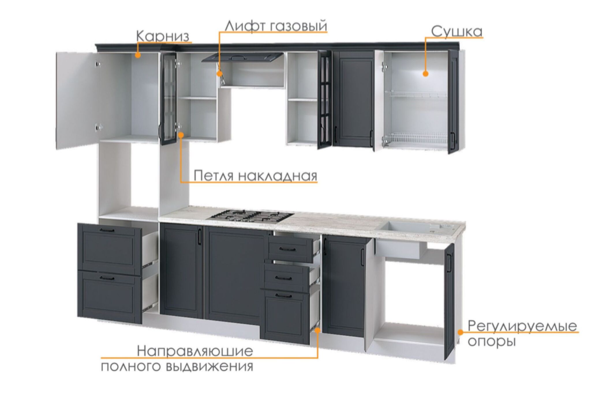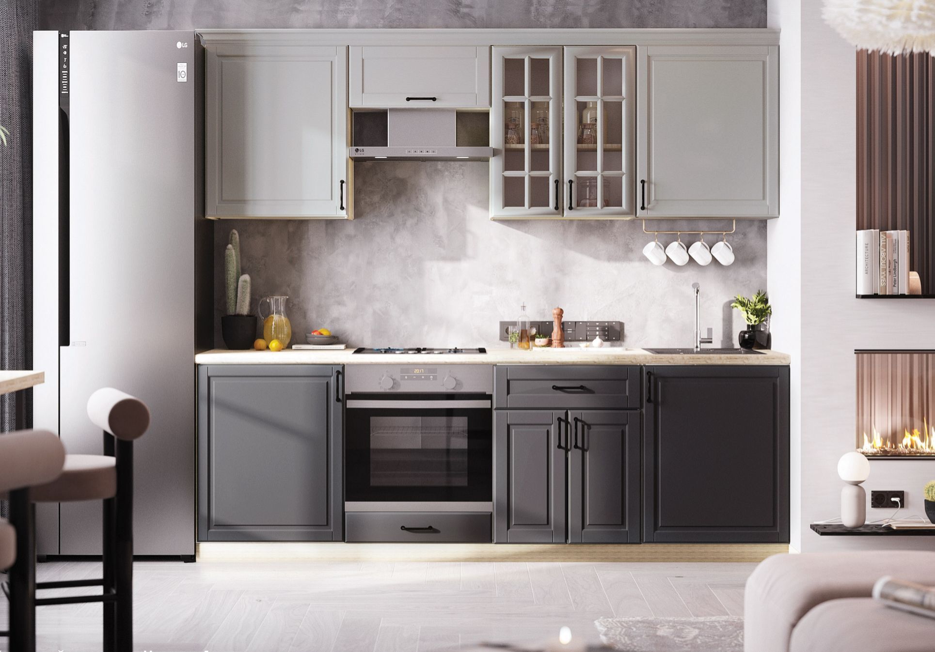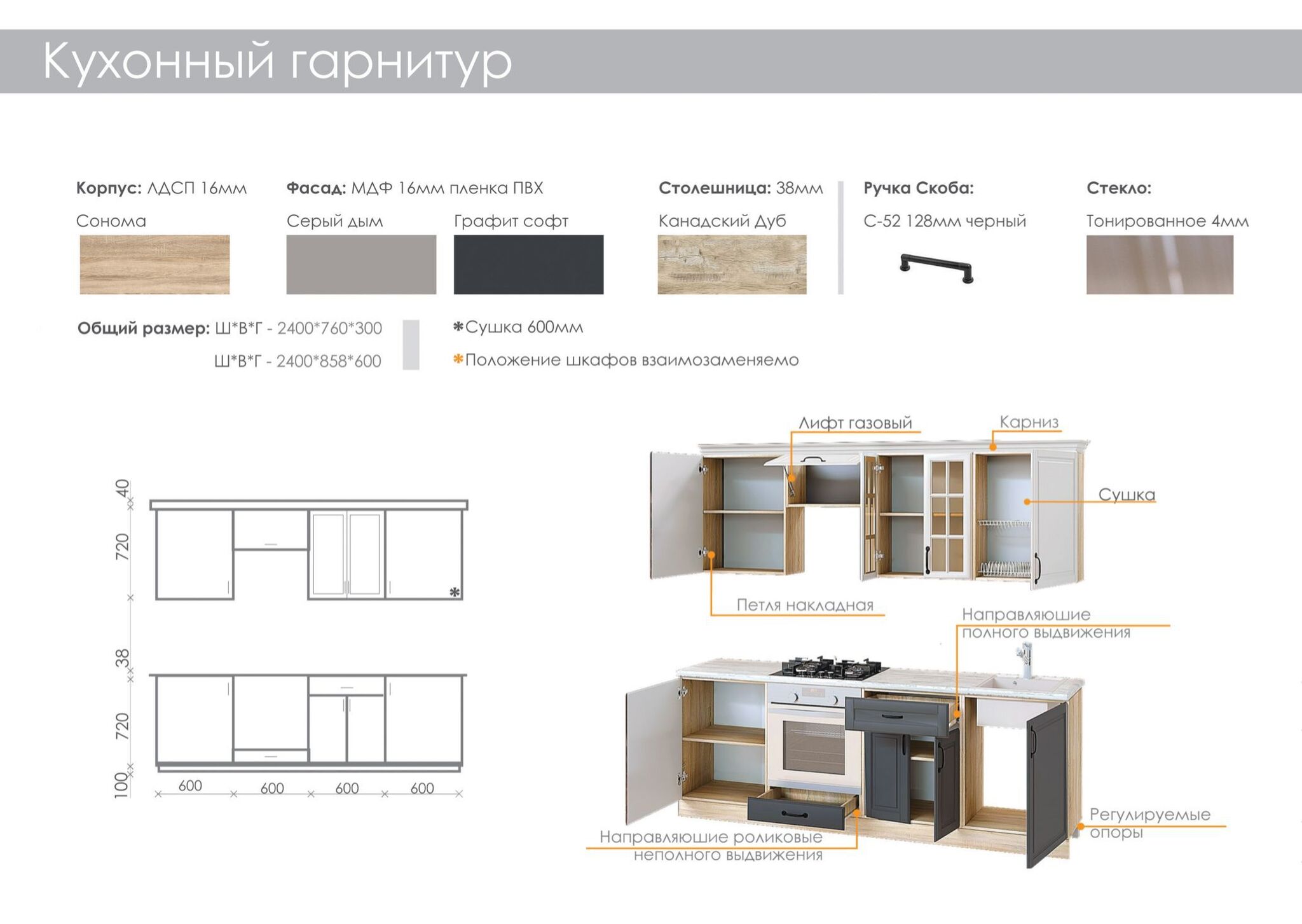 Стильный Кухонный гарнитур. Корпус сонома. Фасад МДФ серый софт/Серый дым. Мойка и техника не входит в комплект.