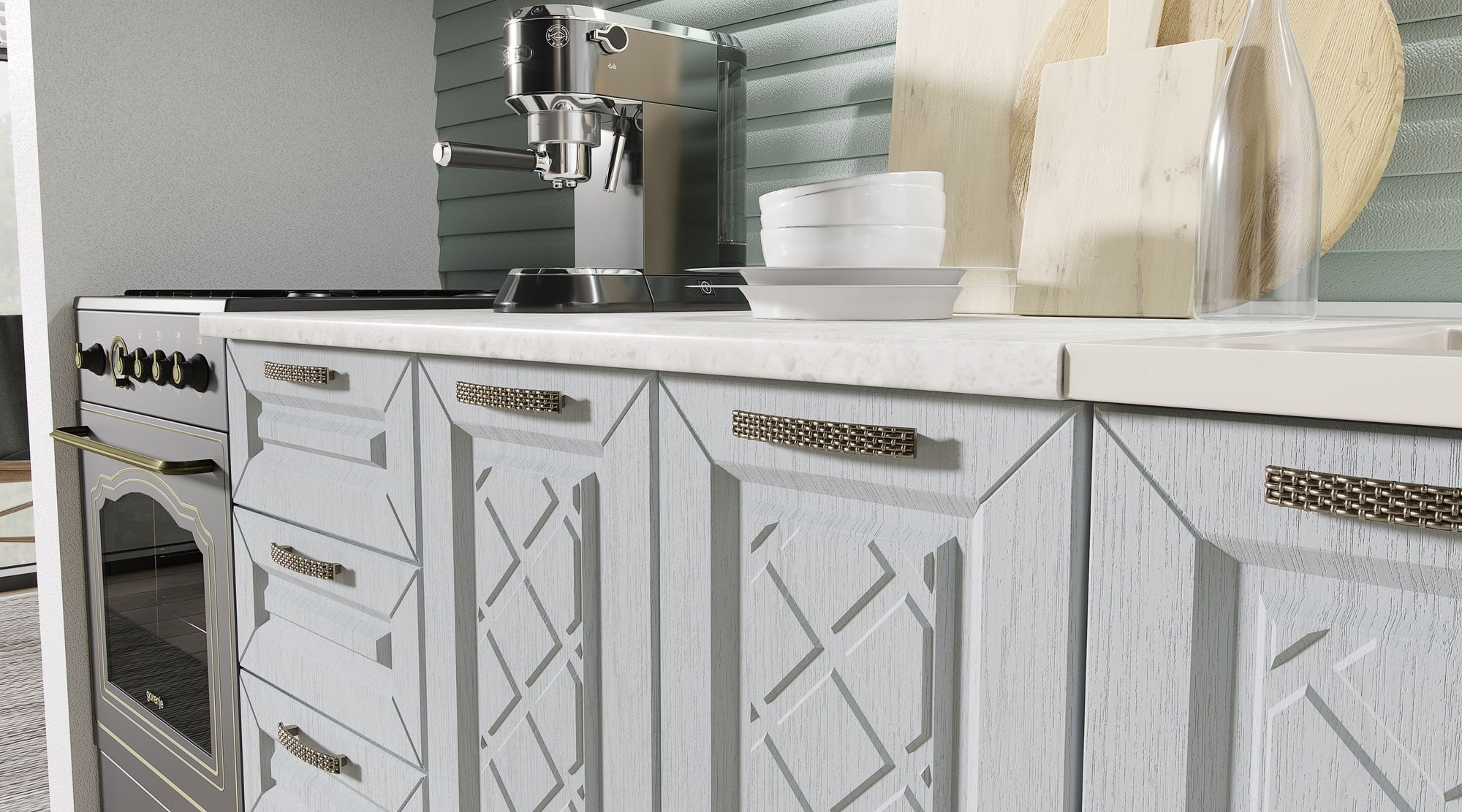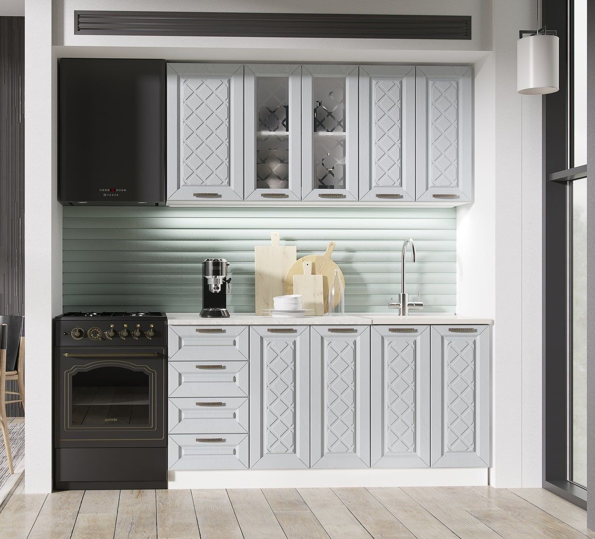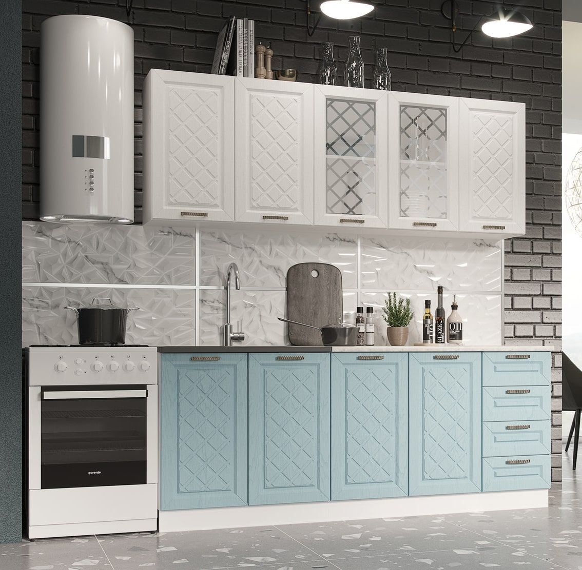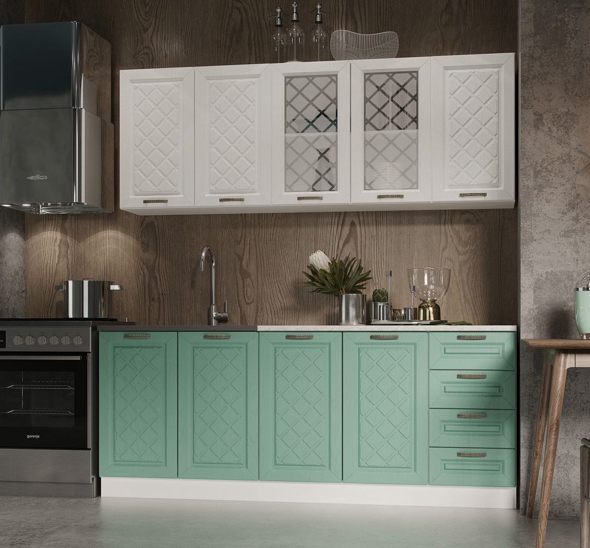 Кухня 1,6 метра выполнена в стиле Прованс.
