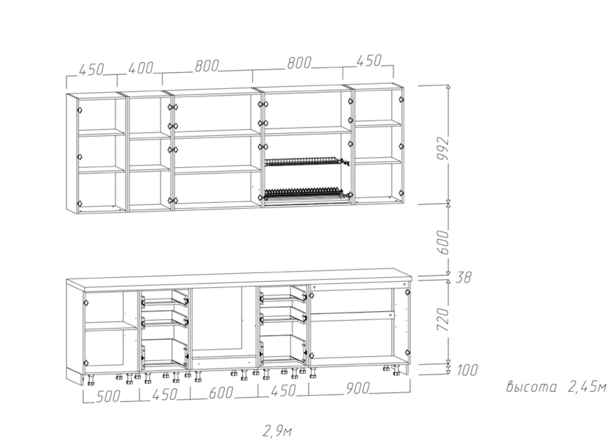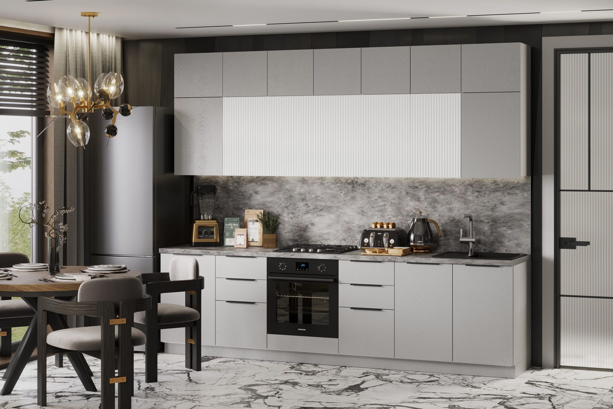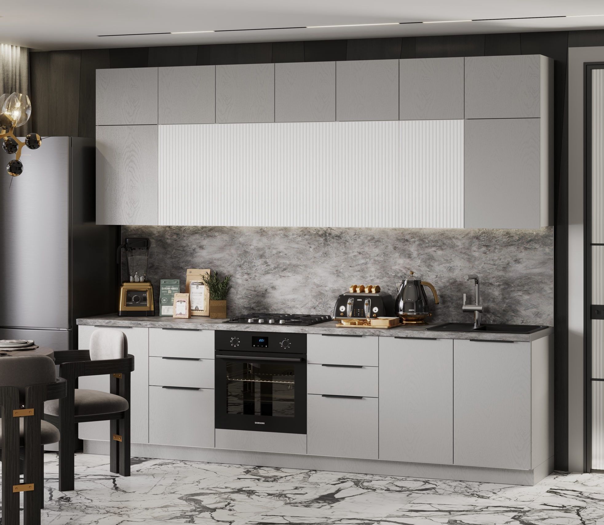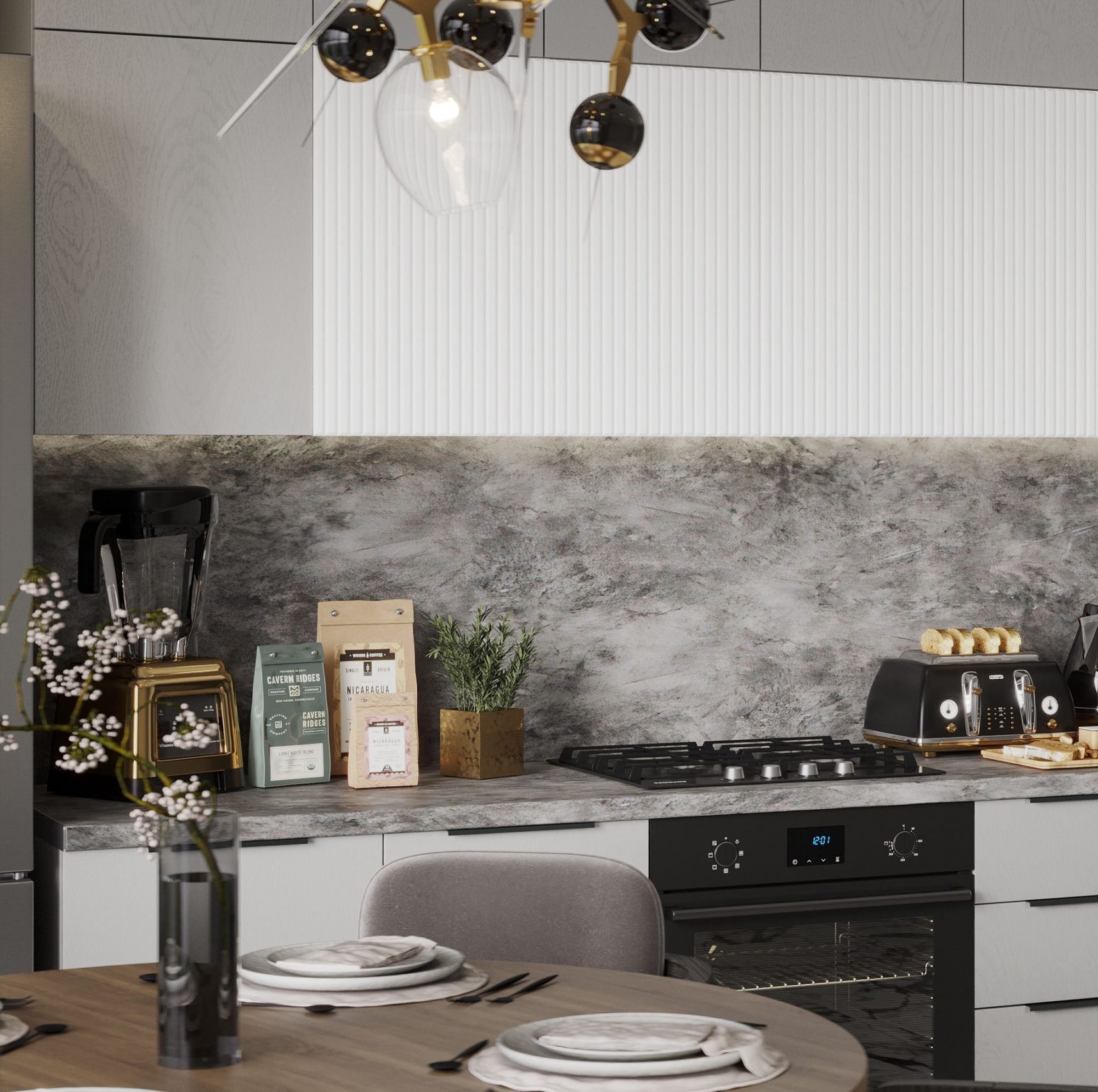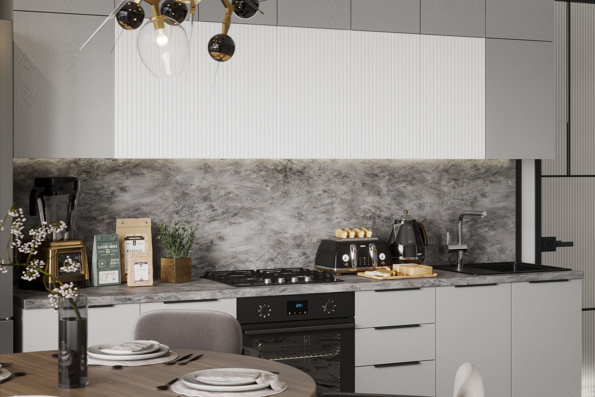 Стеновая панель (фартук) с соединительными планками и плинтусом