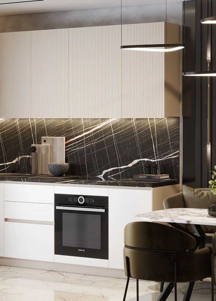 В пенал можно установить духовой шкаф и встраиваемую микроволновую печь.