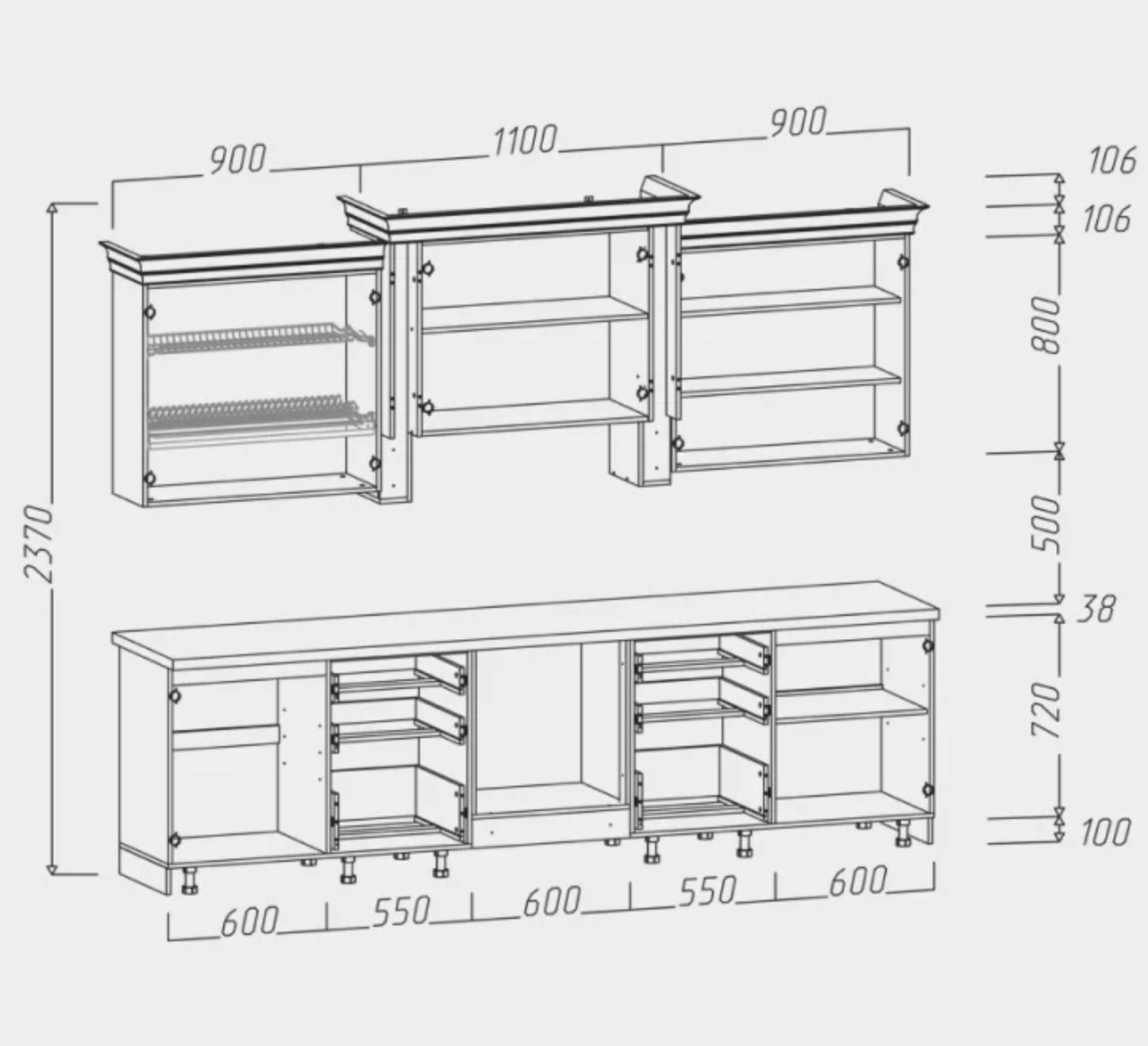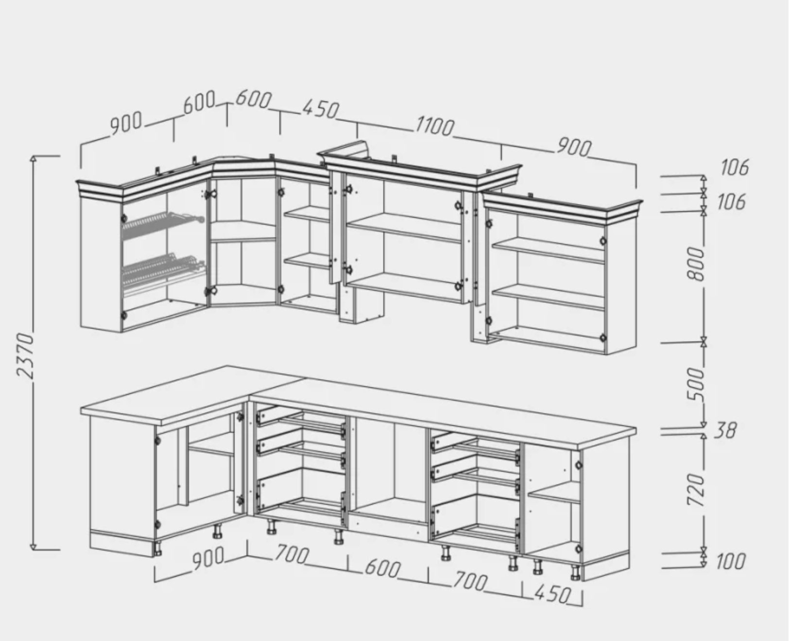 Все размеры указаны по габаритам корпуса без учёта вылета карнизов.