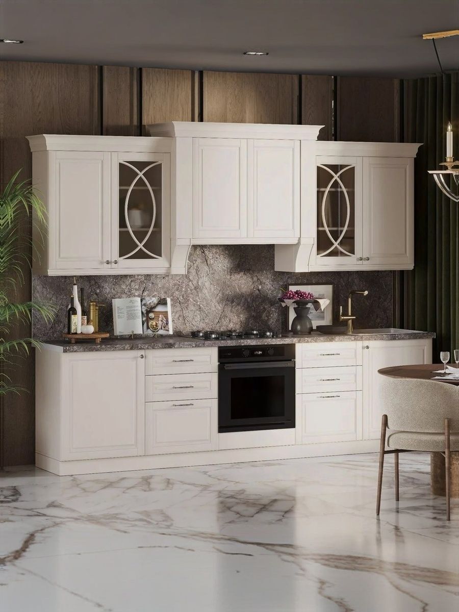 Стеновая панель (фартук) в цвет столешницы с соединительными планками и плинтусом Посудосушитель с поддоном