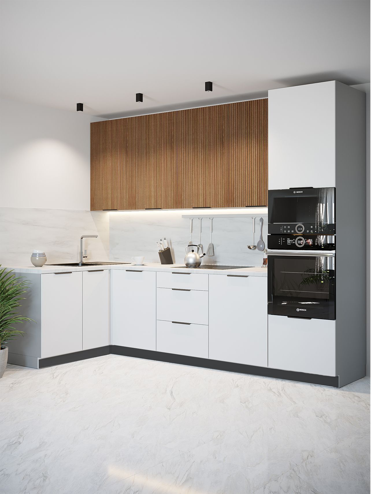 Открывание дверей происходит с помощью доводчика, который обеспечивает плавное закрывание и открытие шкафов без лишних усилий. Это особенно важно для тех, кто часто готовит и пользуется кухней.