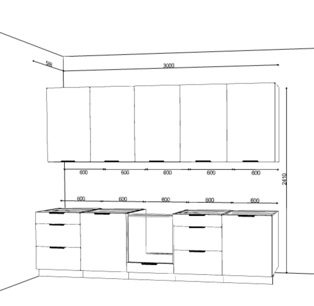 Кухня изготовлена из высококачественных материалов - ЛДСП и МДФ, которые обеспечивают долговечность и прочность конструкции. Покрытие корпуса ламинировано, а фасад имеет матовое покрытие, что делает его более устойчивым к воздействию воды и грязи.