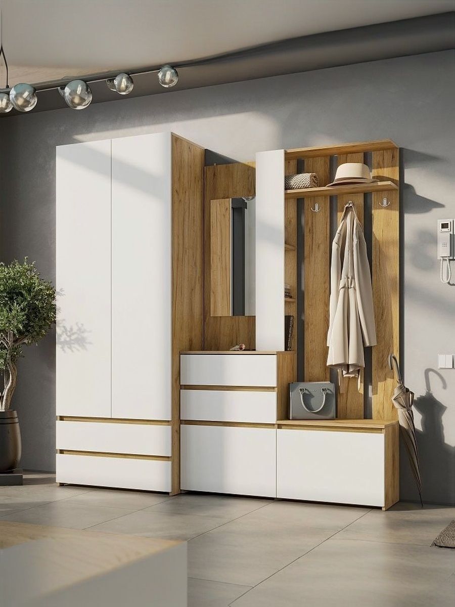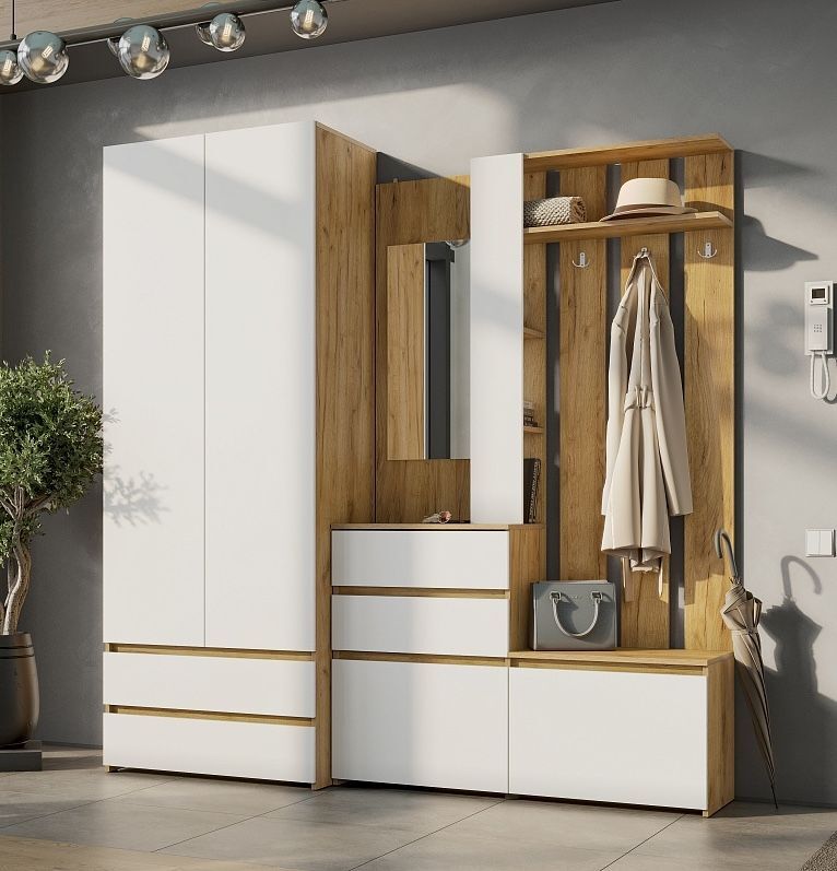 - Комплектация: Полный набор необходимых элементов для создания функциональной и красивой прихожей.