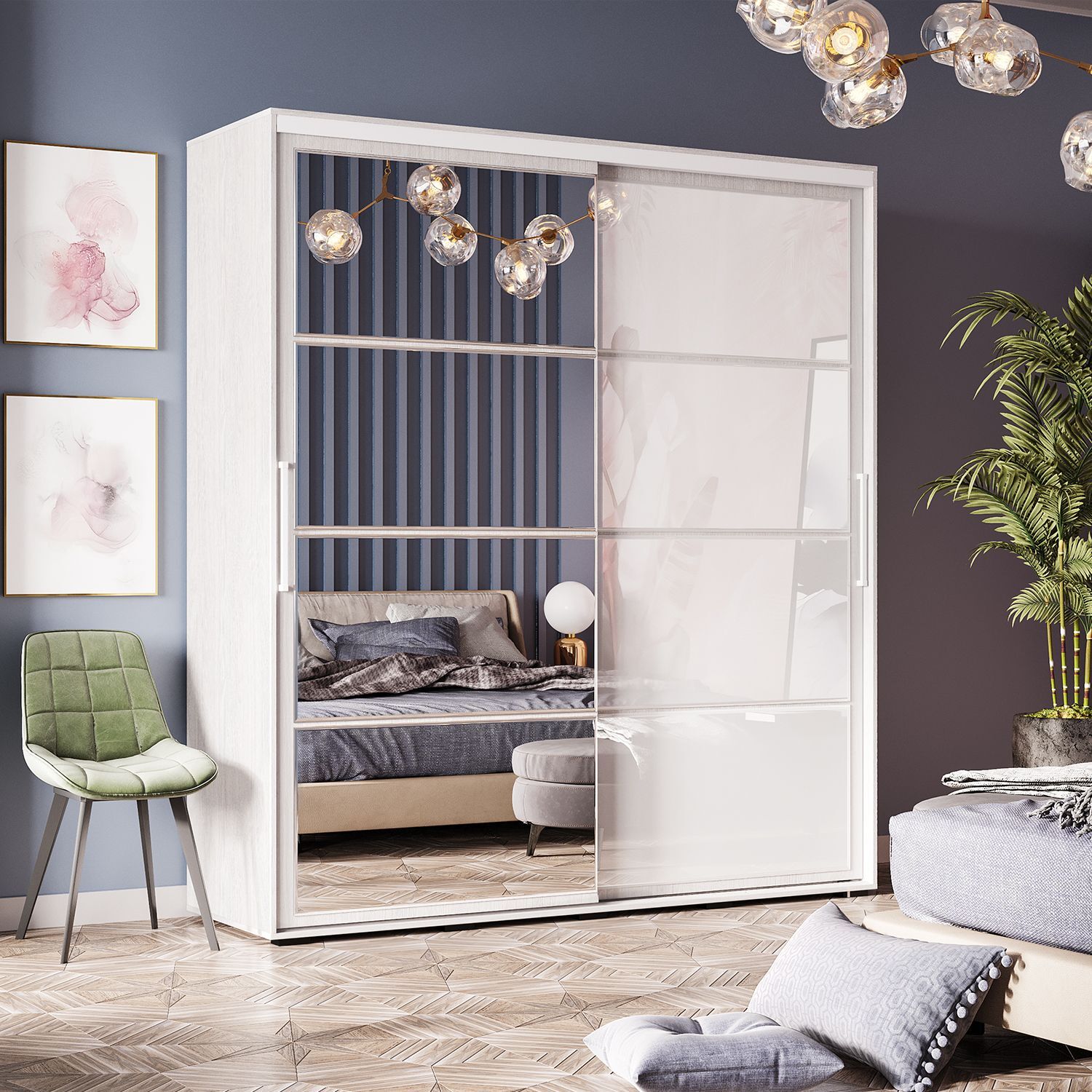 Шкаф-купе 1,96 м ясень белый