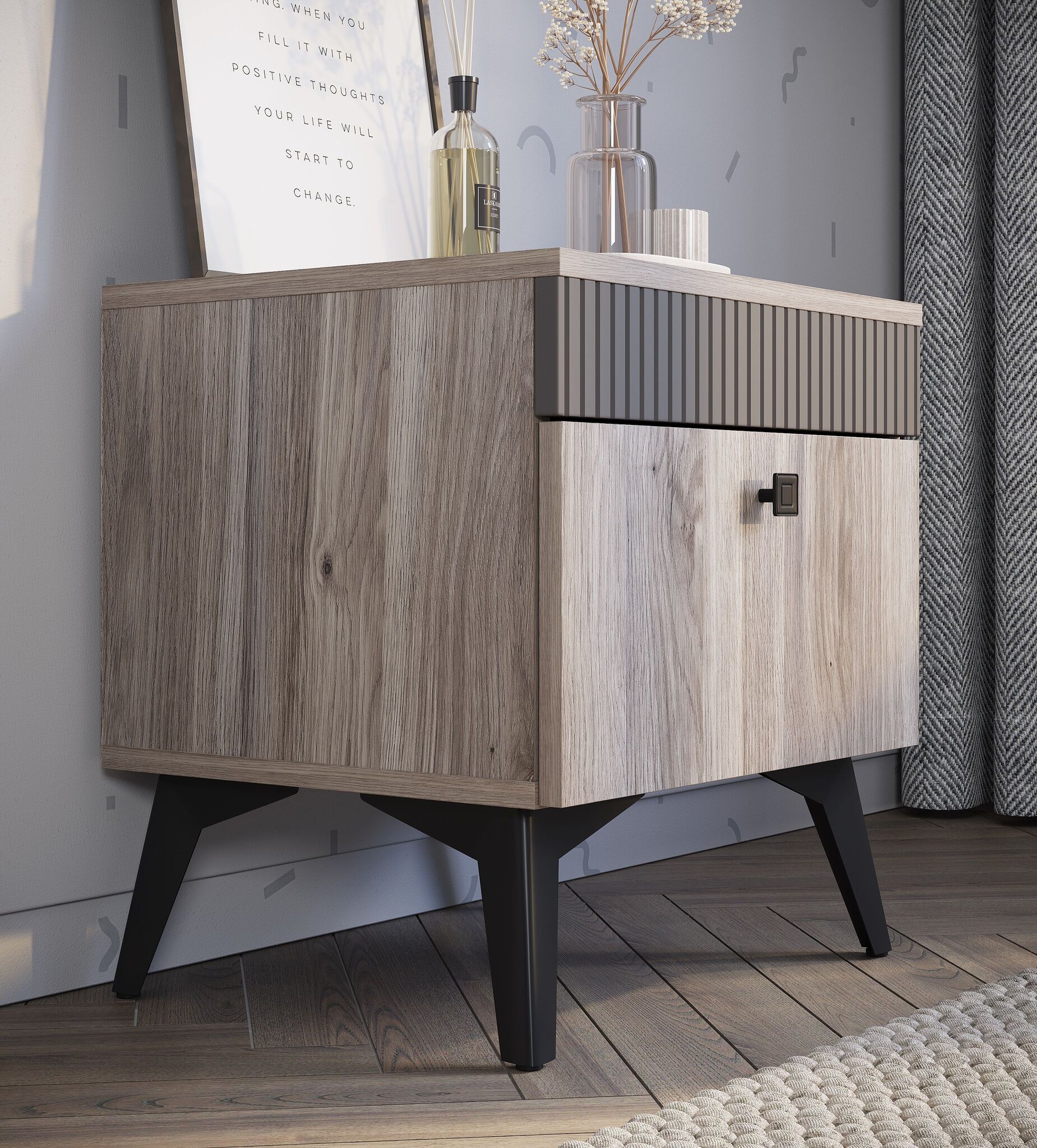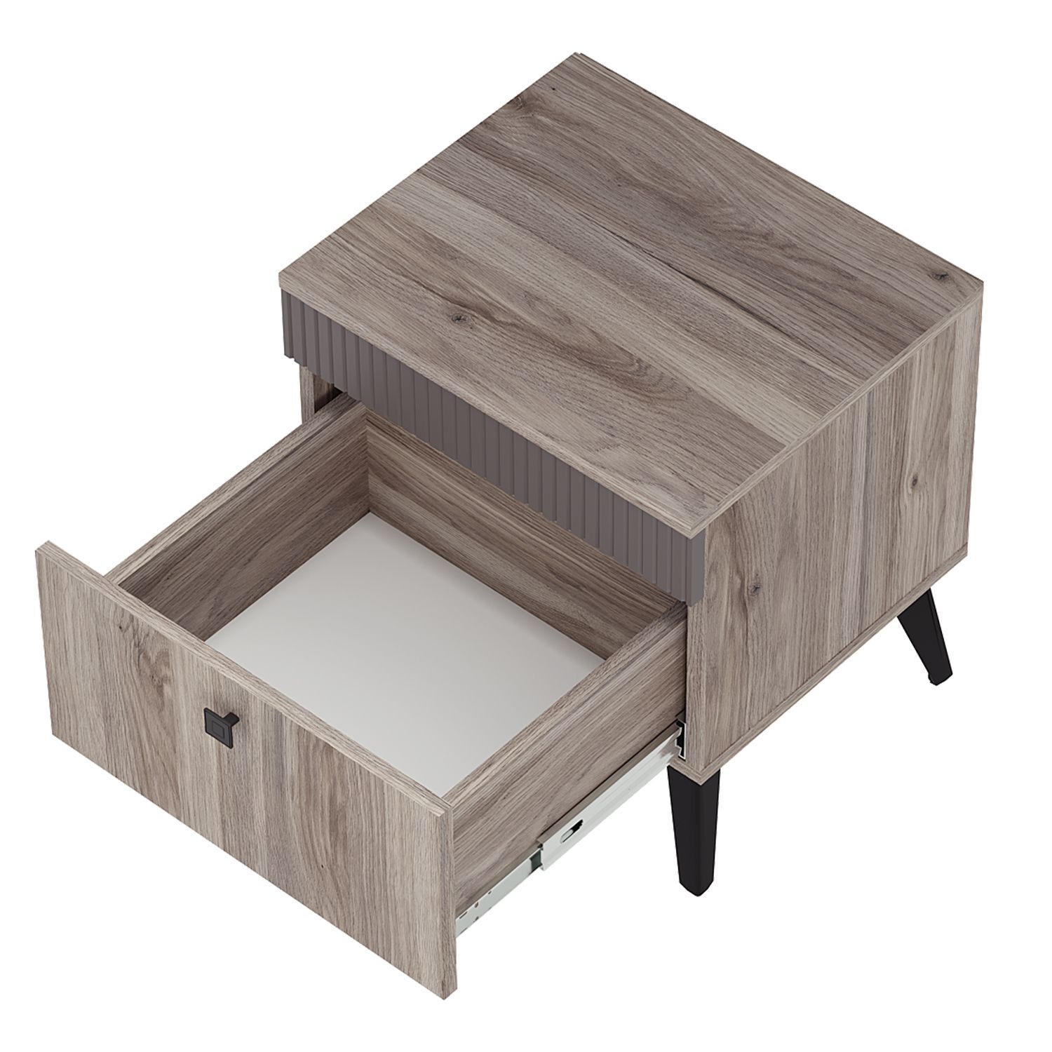 Спальный гарнитур выполнен в стиле лофт, который подчеркивает элегантность и современность интерьера. Он изготовлен из дерева высокого качества, что обеспечивает долгий срок службы и прочность конструкции.