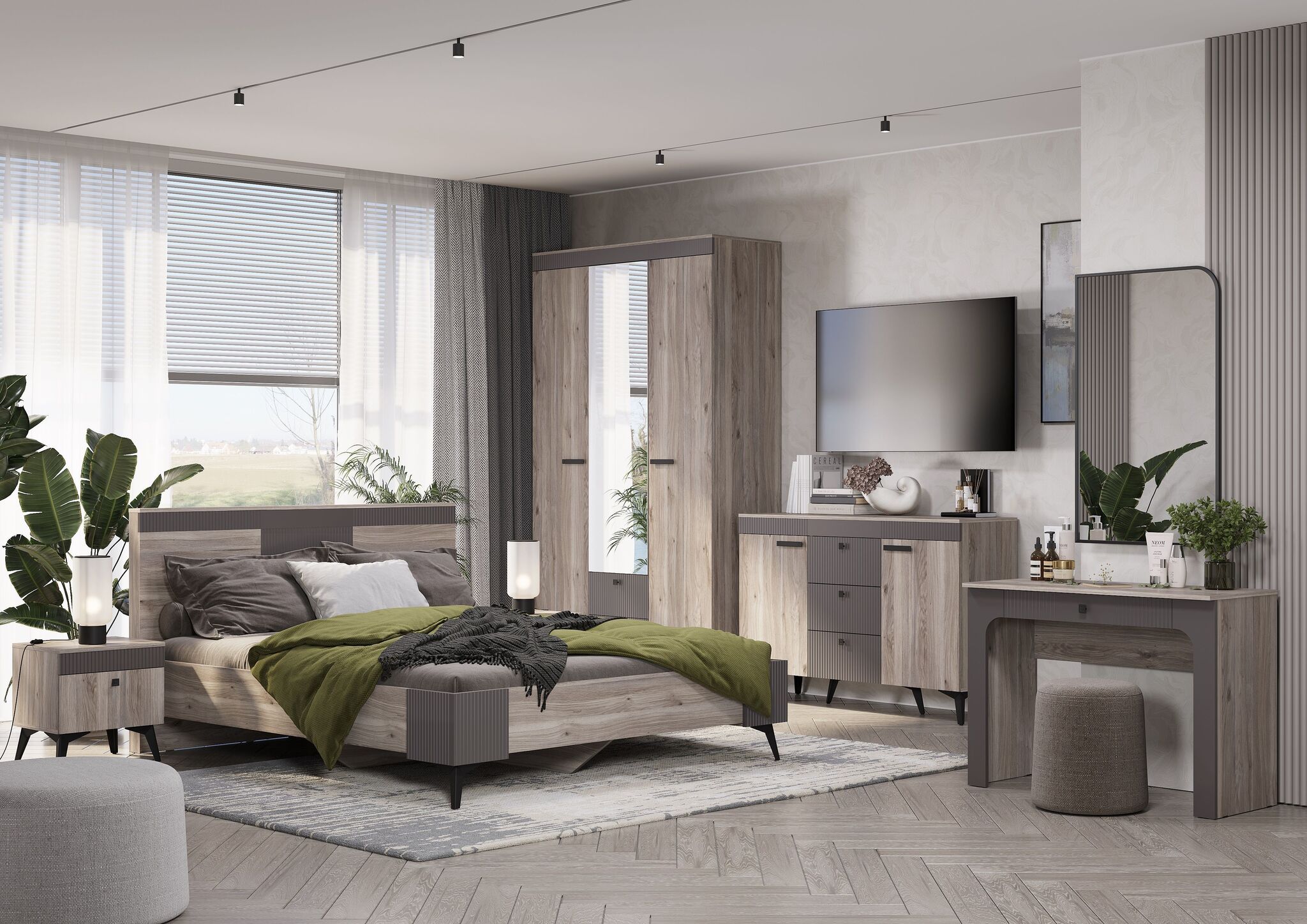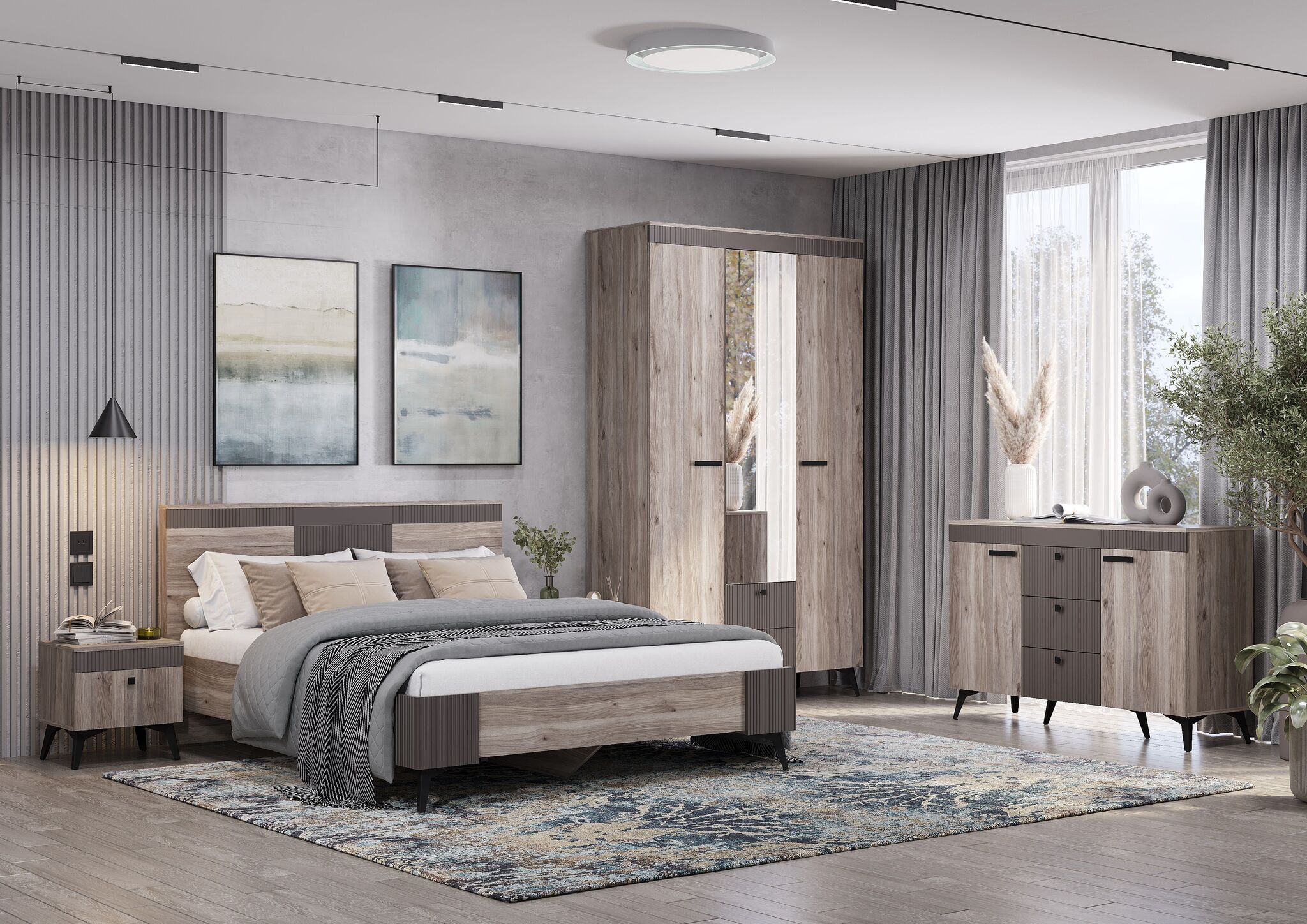 Спальный гарнитур КС07 - это идеальное решение для тех, кто хочет создать уютную и функциональную спальню. Этот комплект состоит из кровати, комода, тумбы и шкафа для одежды, что обеспечивает максимальную комфортность и удобство использования.