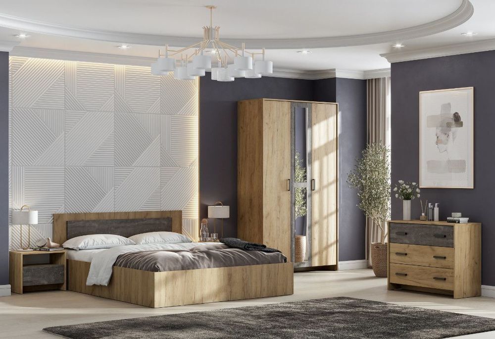 Спальный гарнитур Лофт изготовлен из натурального дерева, что обеспечивает высокую прочность и долговечность изделия. Он выполнен в современном стиле лофт, который сочетает в себе классический дизайн с элементами модерна.