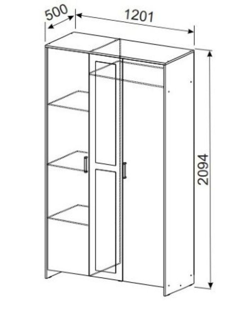 Шкаф для одежды имеет три полки и одно большое отделение для хранения вещей. Он оснащен зеркалом на передней панели, которое позволит вам легко найти нужную вещь среди множества других.