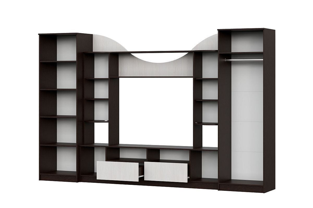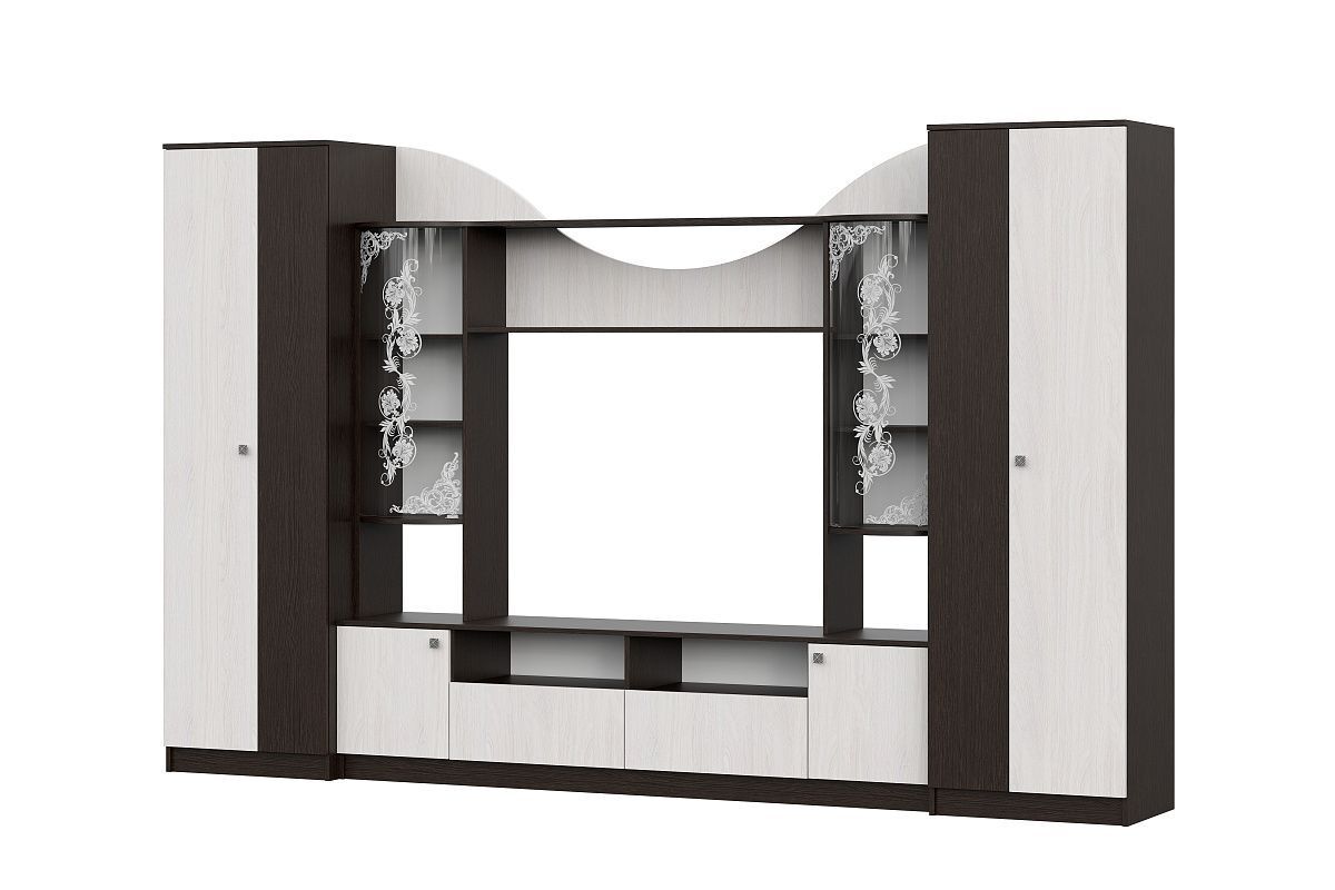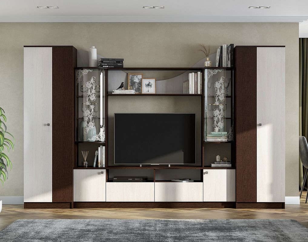 Тумба под ТВ - это еще один важный элемент этой стенки, который позволит вам разместить свой телевизор в удобном месте без необходимости использования дополнительных кронштейнов или других приспособлений.
