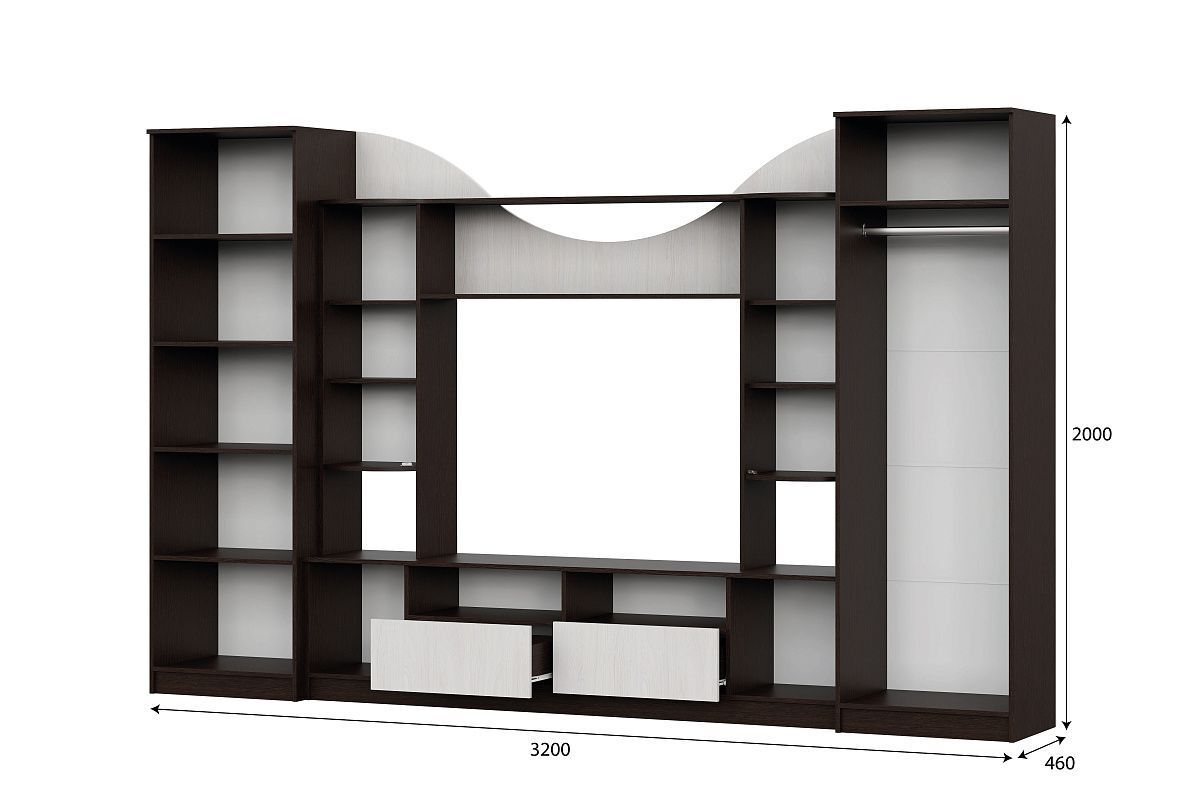 Стенка для гостиной 3,2 м, МГ 8 ясень анкор/дуб венге - это идеальное решение для тех, кто хочет создать современную и стильную атмосферу в своем доме или даче. Эта стенка отличается высоким качеством материалов, которые использовались при ее изготовлении, а также уникальным дизайном, который сочетает в себе элементы современного стиля и классической элегантности.