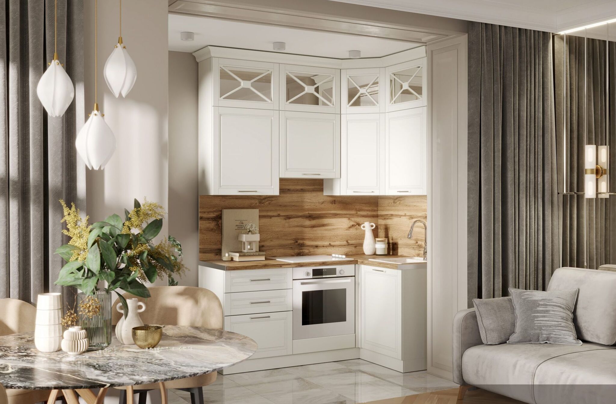 Кухонный гарнитур в стиле неоклассика, универсальная сборка